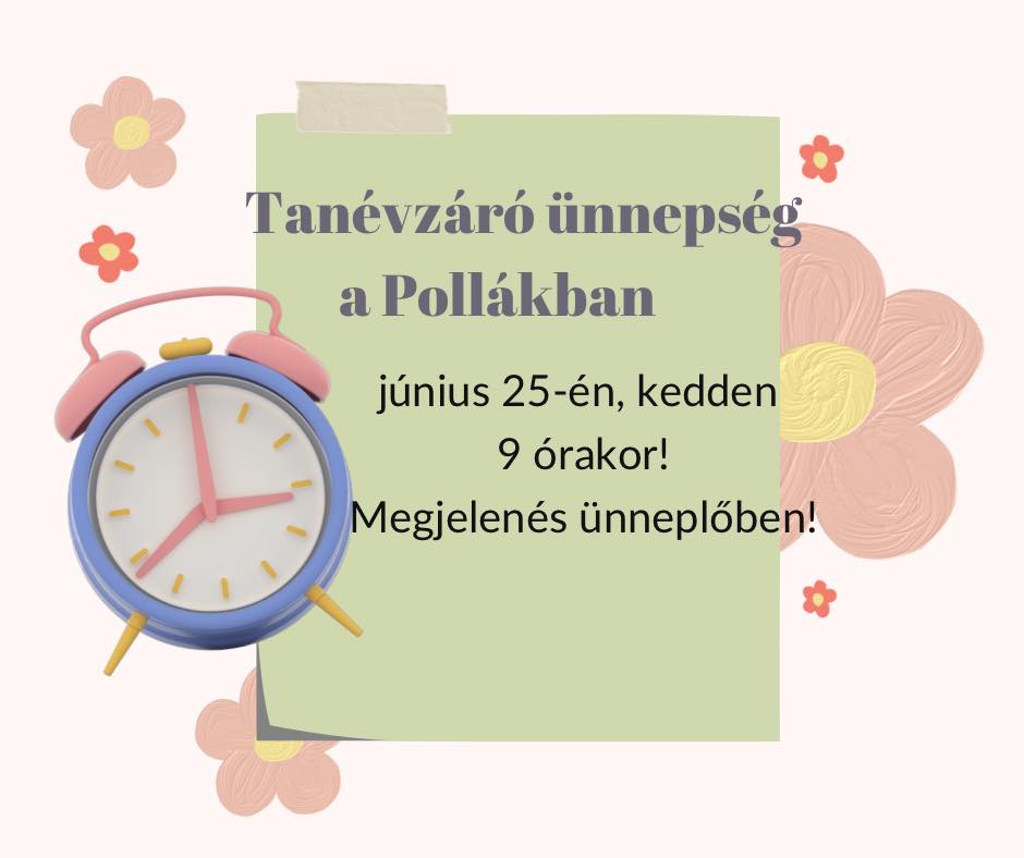 Tanévzáró ünnepség és bizonyítványosztás a 9-10-11. évfolyamnak és a 13.B osztálynak 2024. június 25-én, kedden 9 órakor. 📖