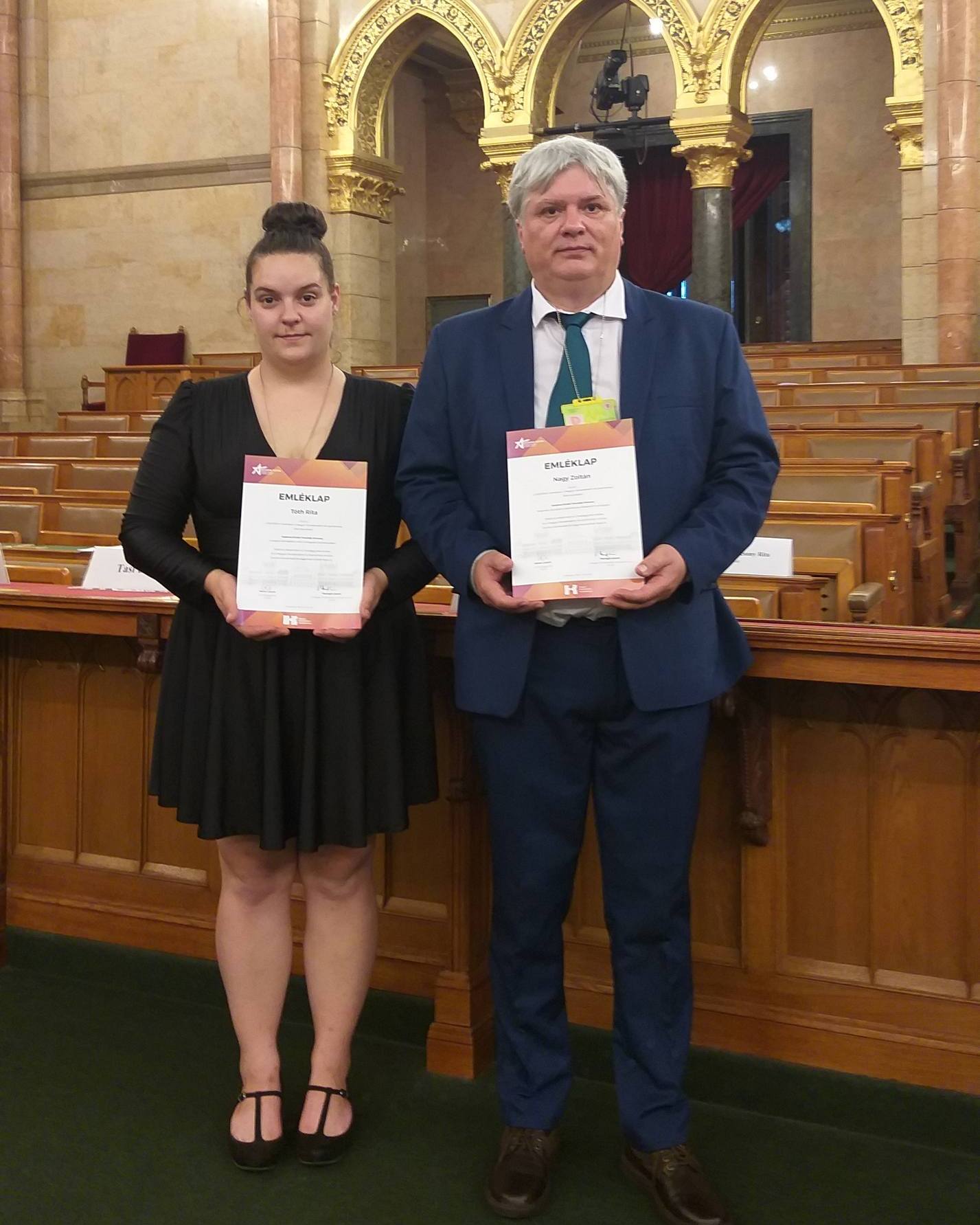 Május 20-án a Parlamentben oklevélben részesült Tóth Rita a Szakma Kiváló tanulója versenyen hegesztő szakmában elért országos második helyezéért és felkészítő tanára, Nagy Zoltán.