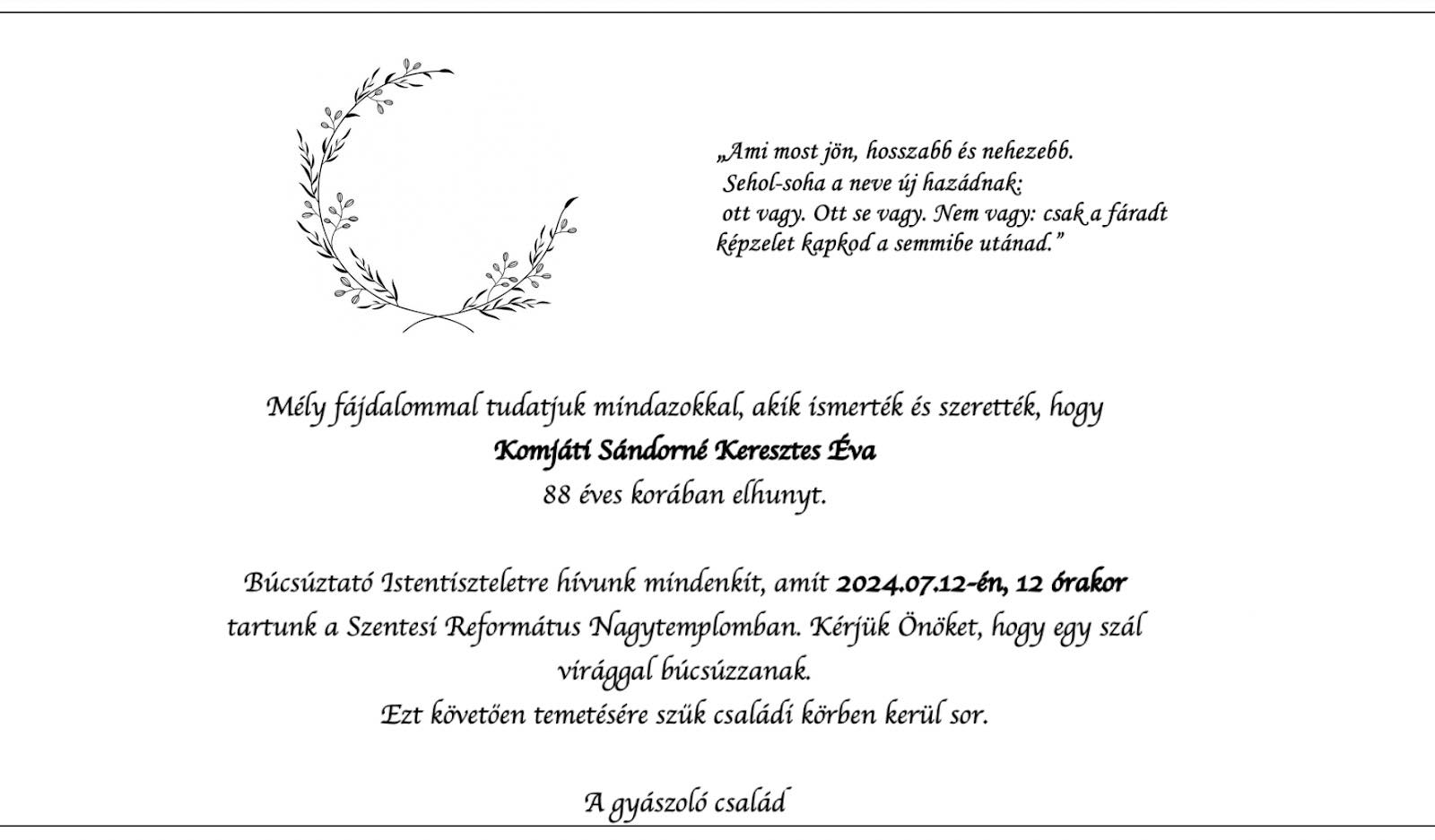 Kezdőlap Szentesi Élet Komjáti Sándorné sz. Keresztes Évát, a Horváth Mihály Gimnázium volt tanárát búc…