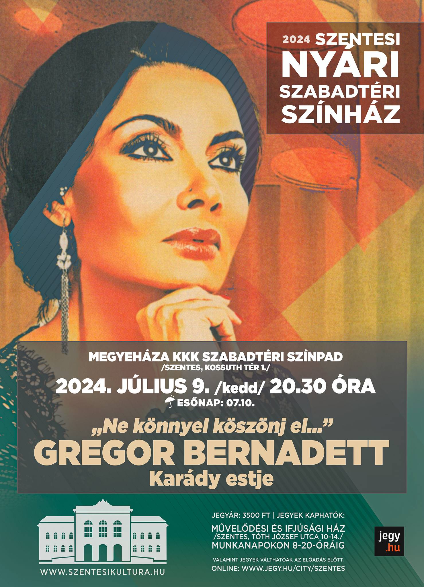 20:30 Szentesi Nyári Szabadtéri Színház: „Ne könnyel köszönj el…” Gregor Bernadett Karády estje