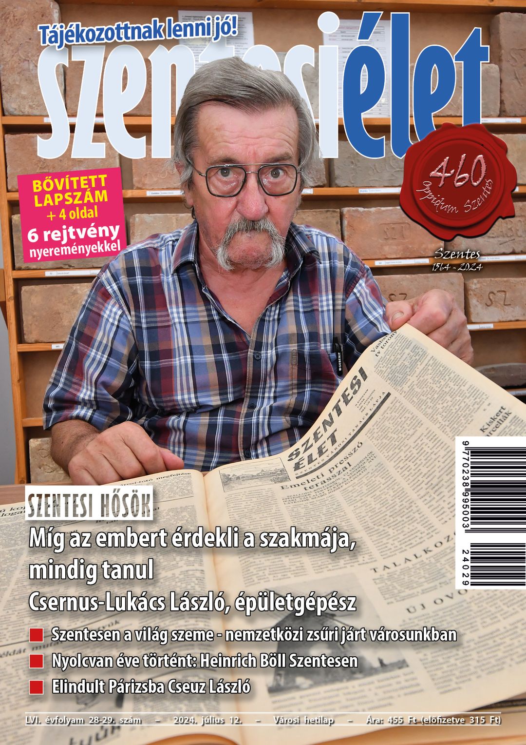Az e heti, bővített, 6 keresztrejtvény melléklettel megjelenő Szentesi Élet címlapján Csernus-Lukács László épületgépészeti vállalkozó szerepel. A városban közismert szakember interjúnkban beszélt pályájáról, és azt is megosztja az olvasókkal, hogy egy olyan régi „szakit” is érhetnek meglepetések, mint amilyen ő. Legalábbis az épületgépészettel, víz- és gázfűtéssel a tanulóéveket is beleértve mintegy hatvan éve foglalkozó vállalkozó úgy tapasztalta, mindig lehet valami újat tanulni a szakmában. Lapunk Csernuséknál az első megjelenésétől családtagnak számít, maga László és szépkorú édesanyja is többször szerepelt a lapokon.