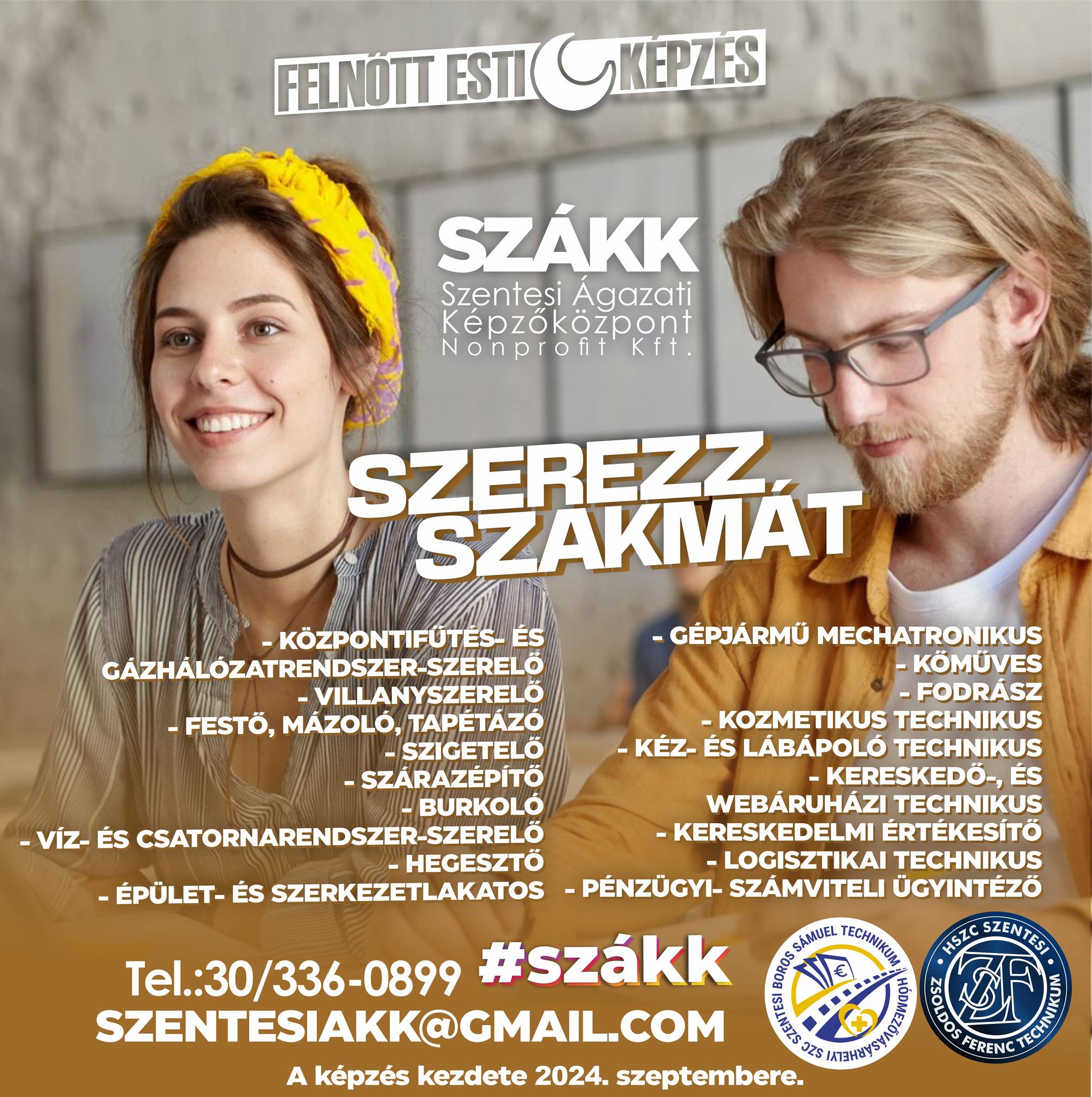 Augusztus 25-ig lehet jelentkezni a Szentesi Ágazati Képzőközpont (SZÁKK) közösségi felületein a felnőttképzésekre. A központ már országosan is meghatározó, a legnagyobb a duális szakképzések terén. Jó szakemberre mindig szükség van, vallja Tonomár Zoltán, operációs projekt- és kommunikációs vezető, akivel az új tanévről is beszélgettünk.