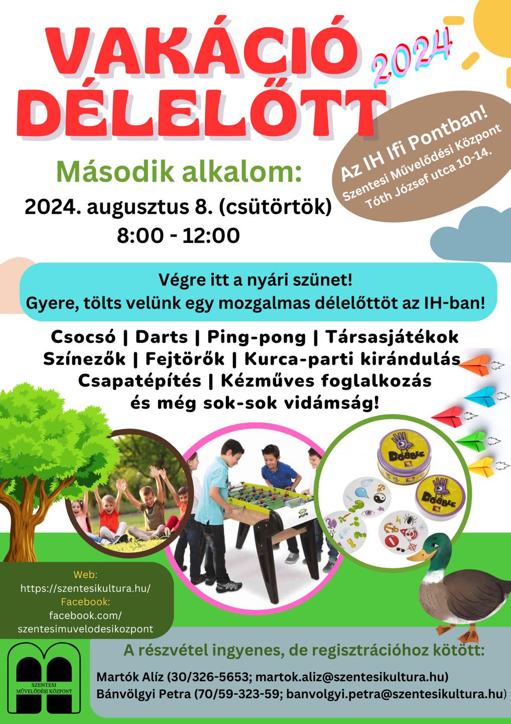Kezdőlap Kultúra és szórakozás Szentesi Művelődési Központ Ismét Vakáció Délelőtt az IH Ifi Pontban!…