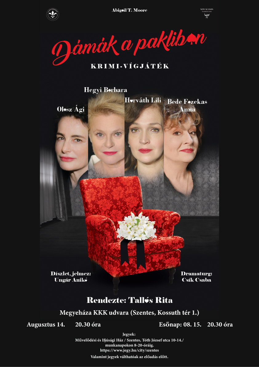 Akár egy Agatha Christie krimi a Sex és New York karaktereivel! A Dámák a pakliban című új krimi-vígjátéka egy izgalmas, egész estés kikapcsolódást kínál a krimi és humor kedvelőinek.