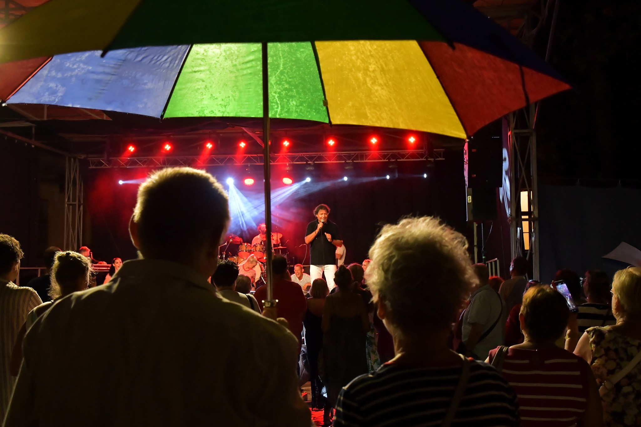 Hevesi Tamás 30 éves jubileumát ünnepli és a Horváth Mihály Gimnázium egykori diákja a Megyeháza udvari színpadán adott koncertet a szentesieknek. Épp elkezdődött a koncert és csak az első taktusok hangoztak el, amikor délről egy viharfelhő vonult át Szentes felett és leszakadt az ég.