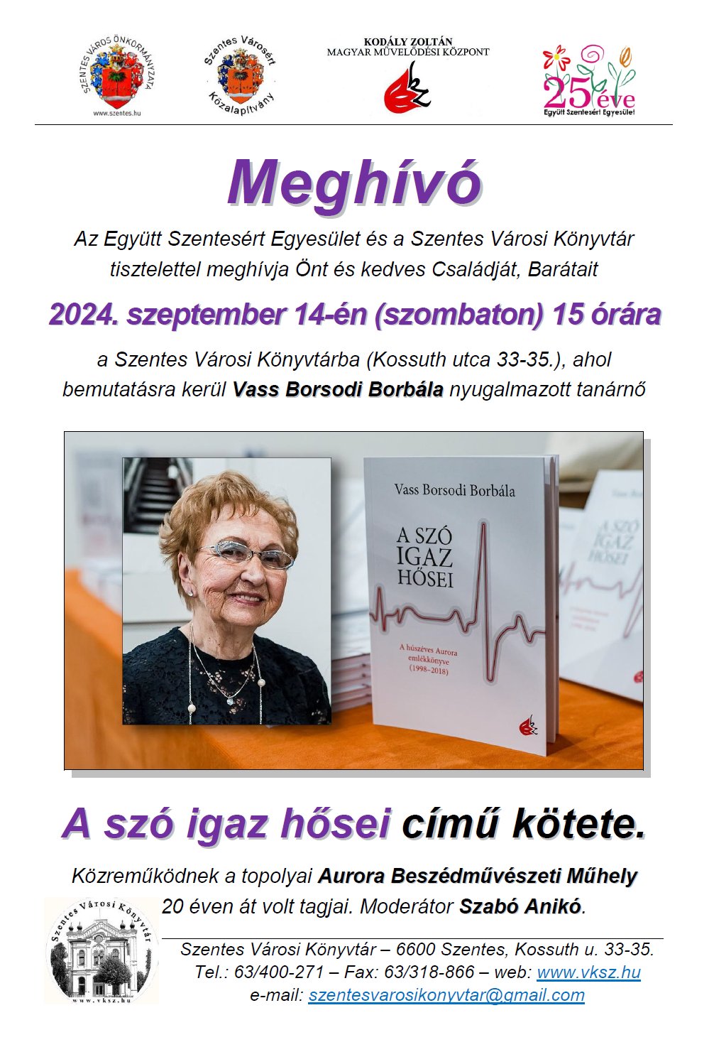 Az Együtt Szentesért Egyesület és a városi könyvtár várja az érdeklődőket…