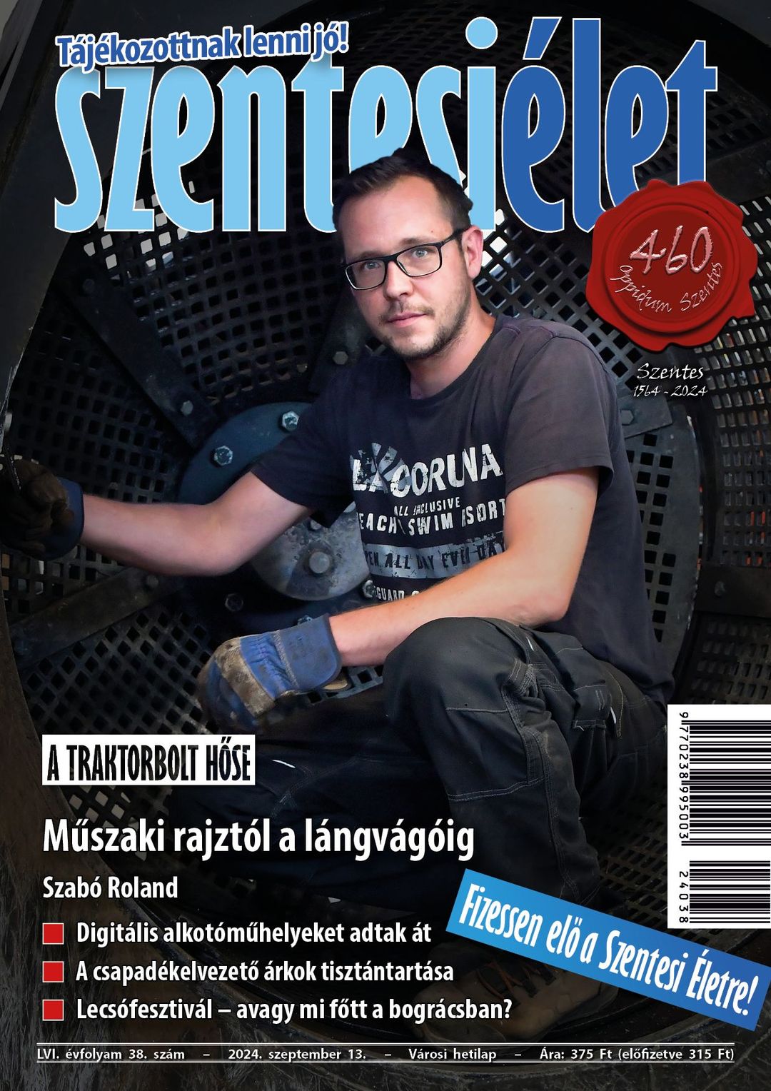 Az e heti Szentesi Élet címoldalán Szabó Roland szerepel, aki a 25 éves Traktorbolt