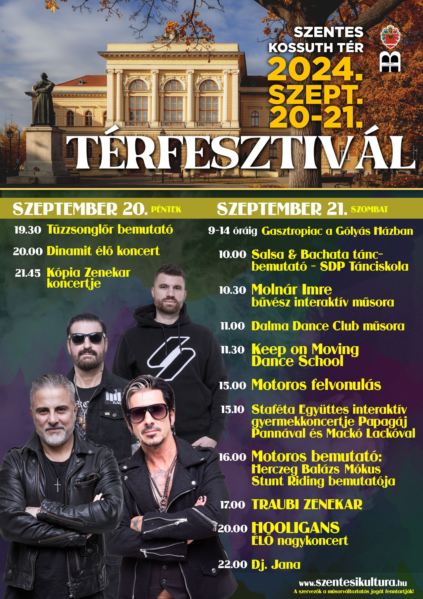 Szentes város Önkormányzata és a Szentesi Művelődési Központ idén is megrendezi a már nagy múltra visszatekintő Térfesztivált a Kossuth téren szeptember 20-21 között!