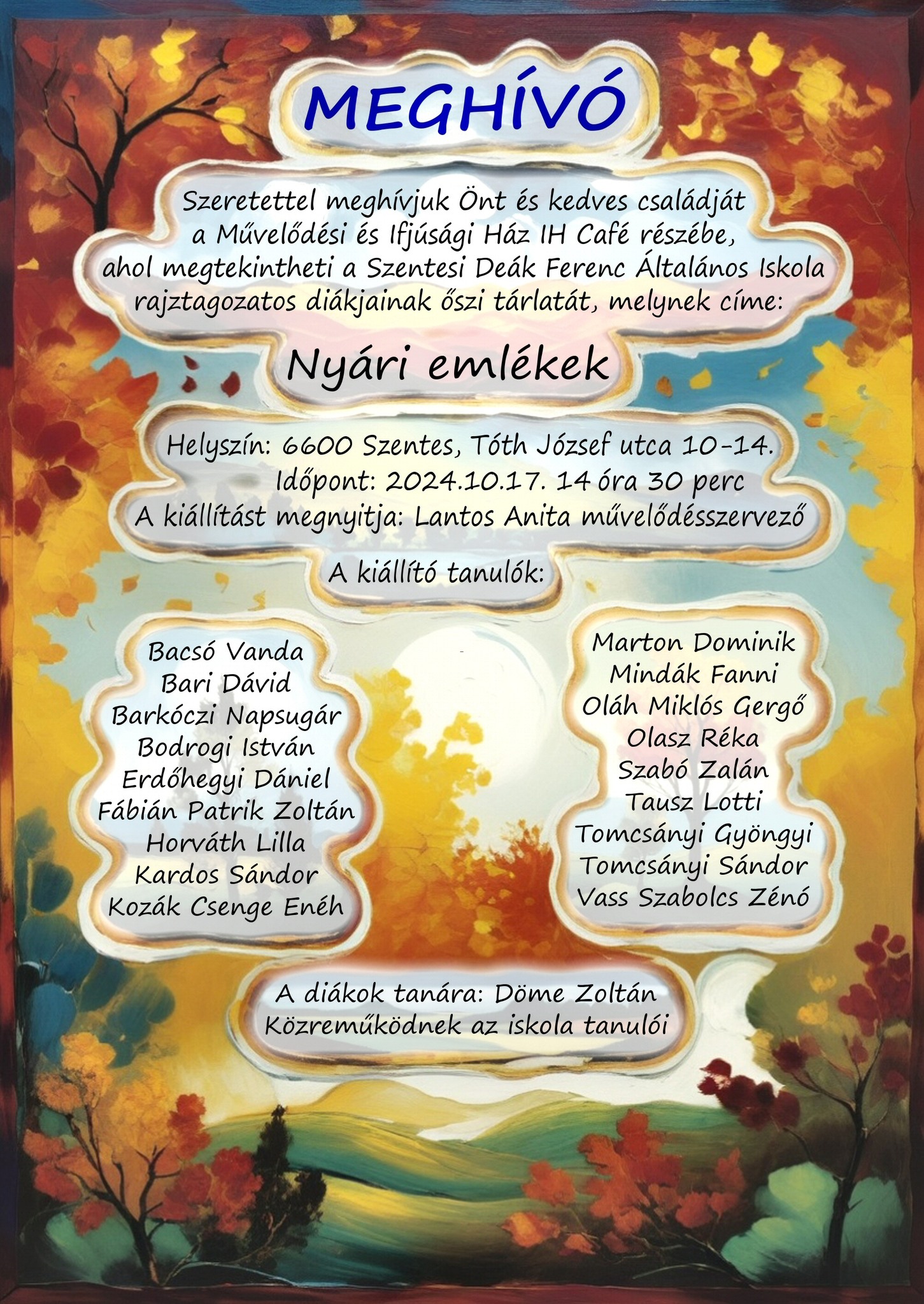 Kezdőlap Kultúra és szórakozás Szentesi Művelődési Központ Megnyílt a kiállítás, várunk szeretettel minden érdeklődőt!…