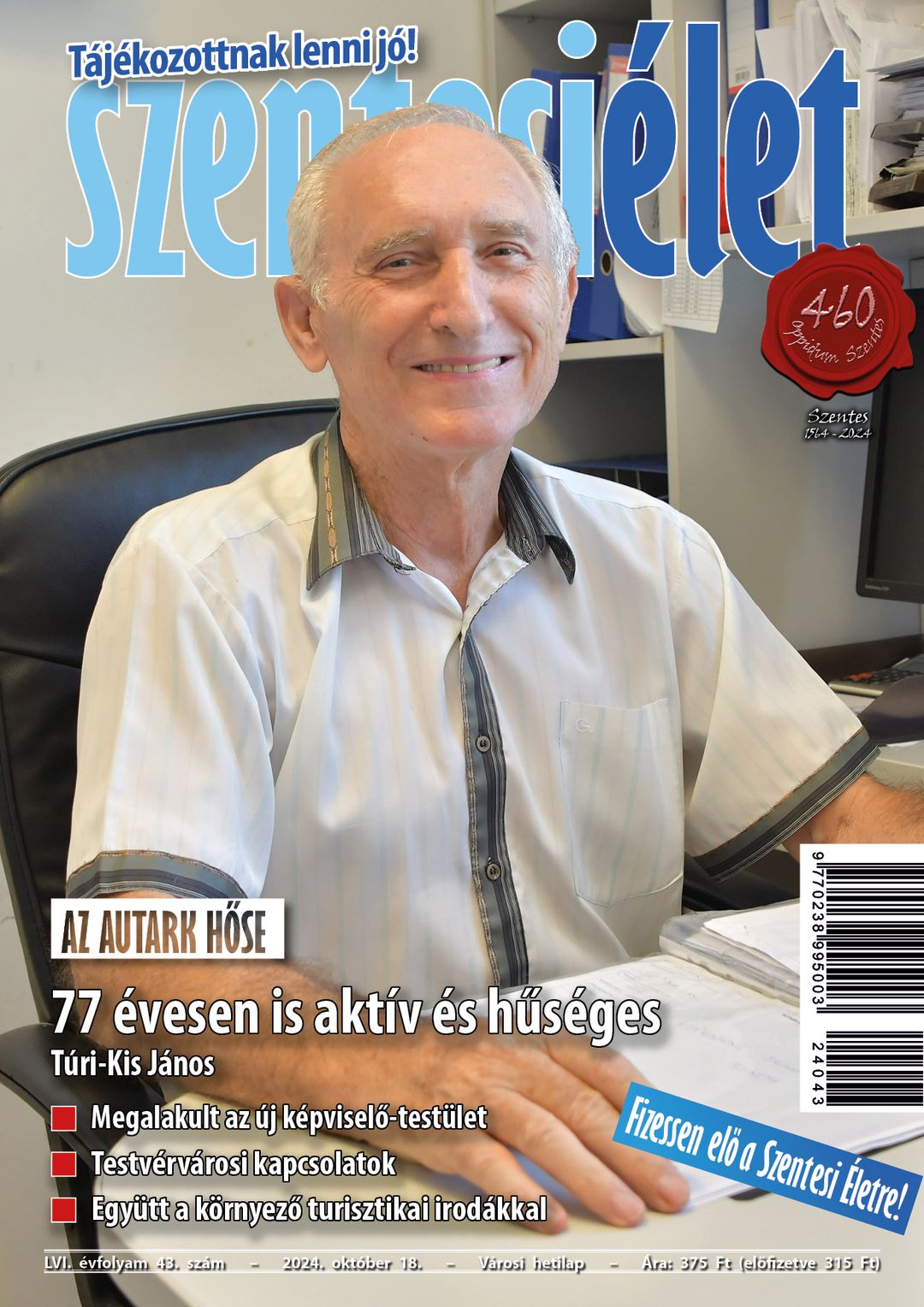 Az e heti Szentesi Élet címoldalán az Autark Hőse, Túri-Kis János szerepel. Túri-Kis János 1993 óta tagja az Autark Kft.-nek. A cég legidősebb tagja is egyben, 77 évesen is megbízható, türelmes, hatalmas teherbíróképességgel rendelkezik. Kozma András, az Autark vezetője választotta címlapra kollégáját, akivel harminc éve dolgozik együtt, tapasztalata és tanácsai, meglátásai mindig sokat lendítettek a cégen.