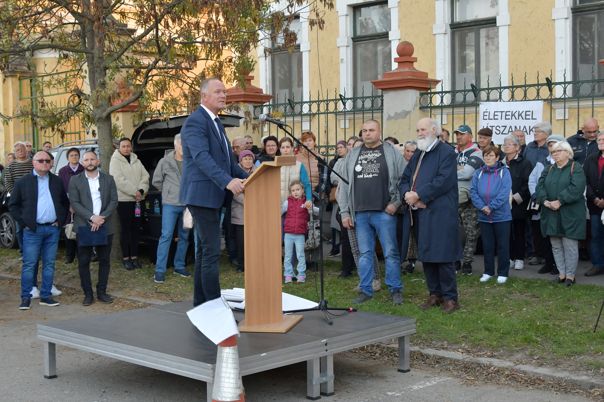 – Ma ezért vagyunk itt, mert ki akarjuk fejezni, hogy mi itt Szentes és környékén megvédjük az értékeinket, nem hagyjuk, hogy lerombolják a kórházunkat!