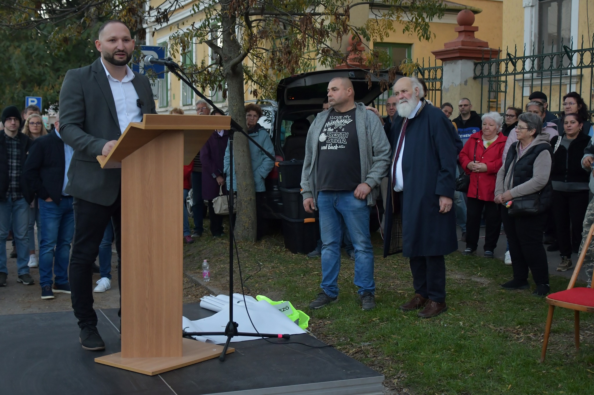 – Sok szeretettel köszöntelek benneteket, nagyon örülök, hogy ilyen sokan eljöttetek – kezdte beszédét Varga Ferenc országgyűlési képviselő, a tüntetés szervezője, majd folytatta: