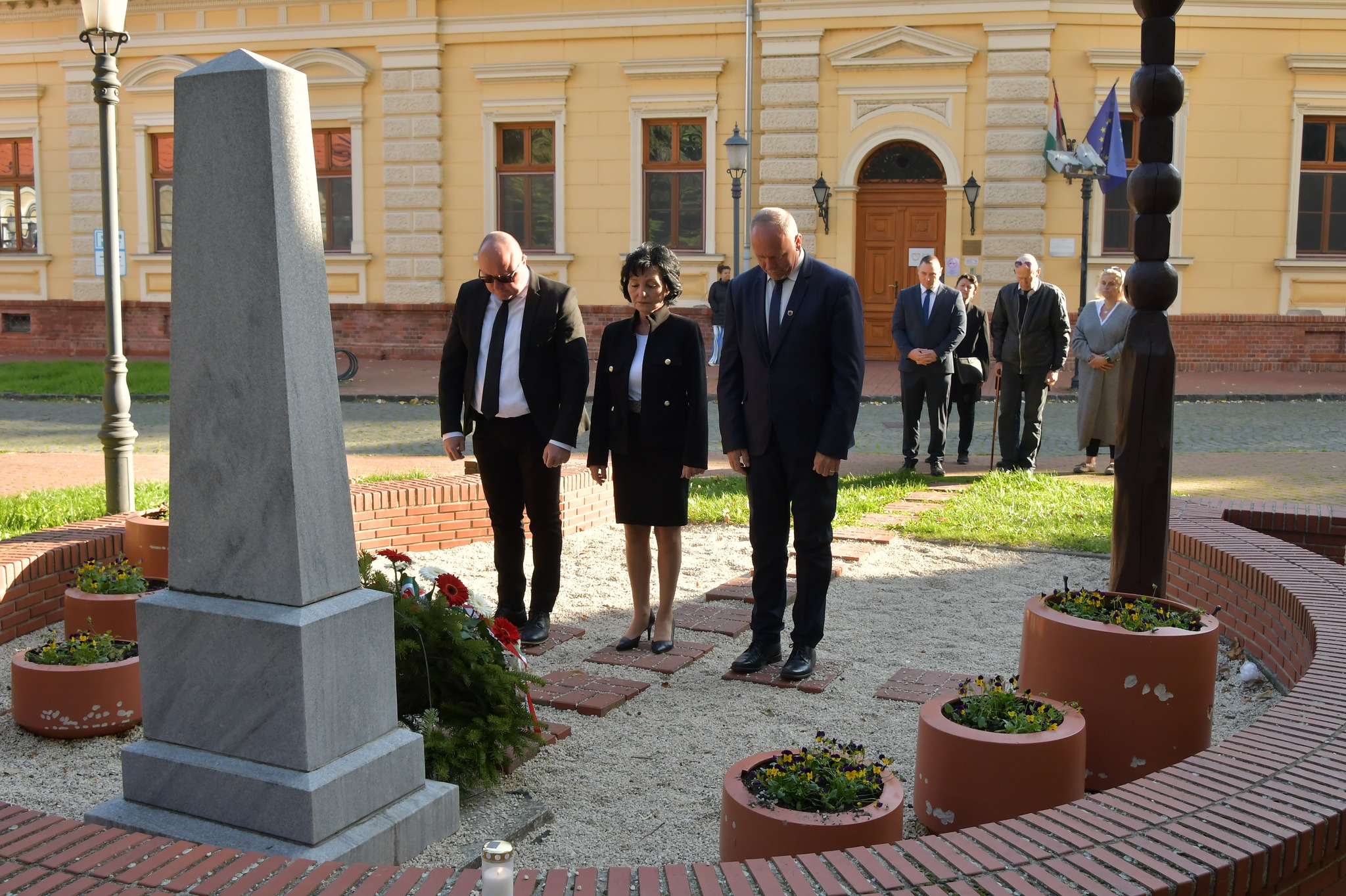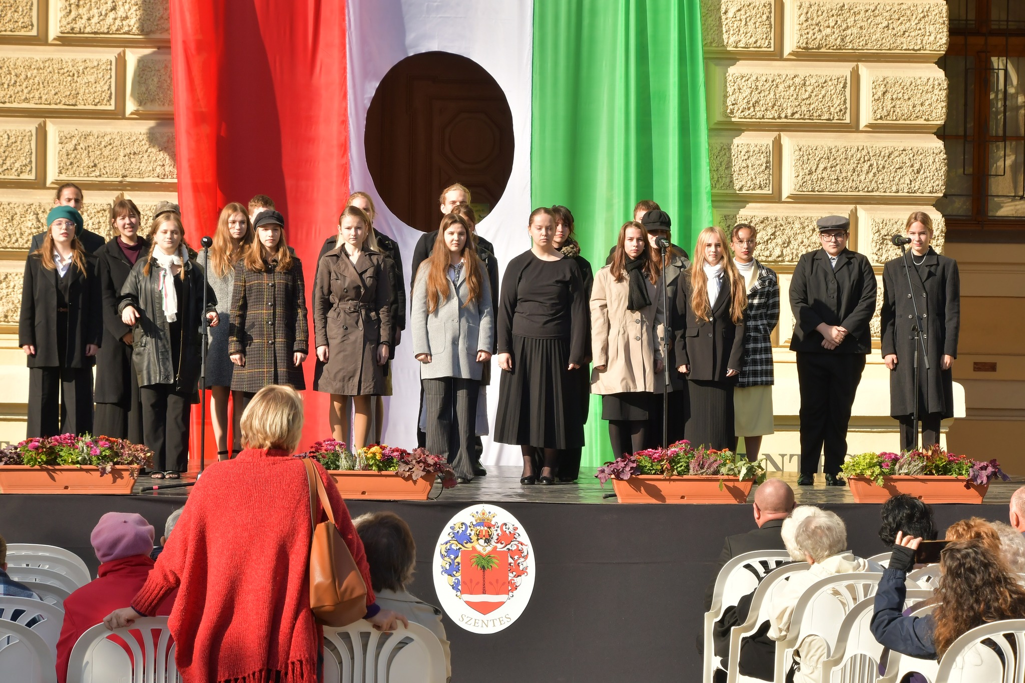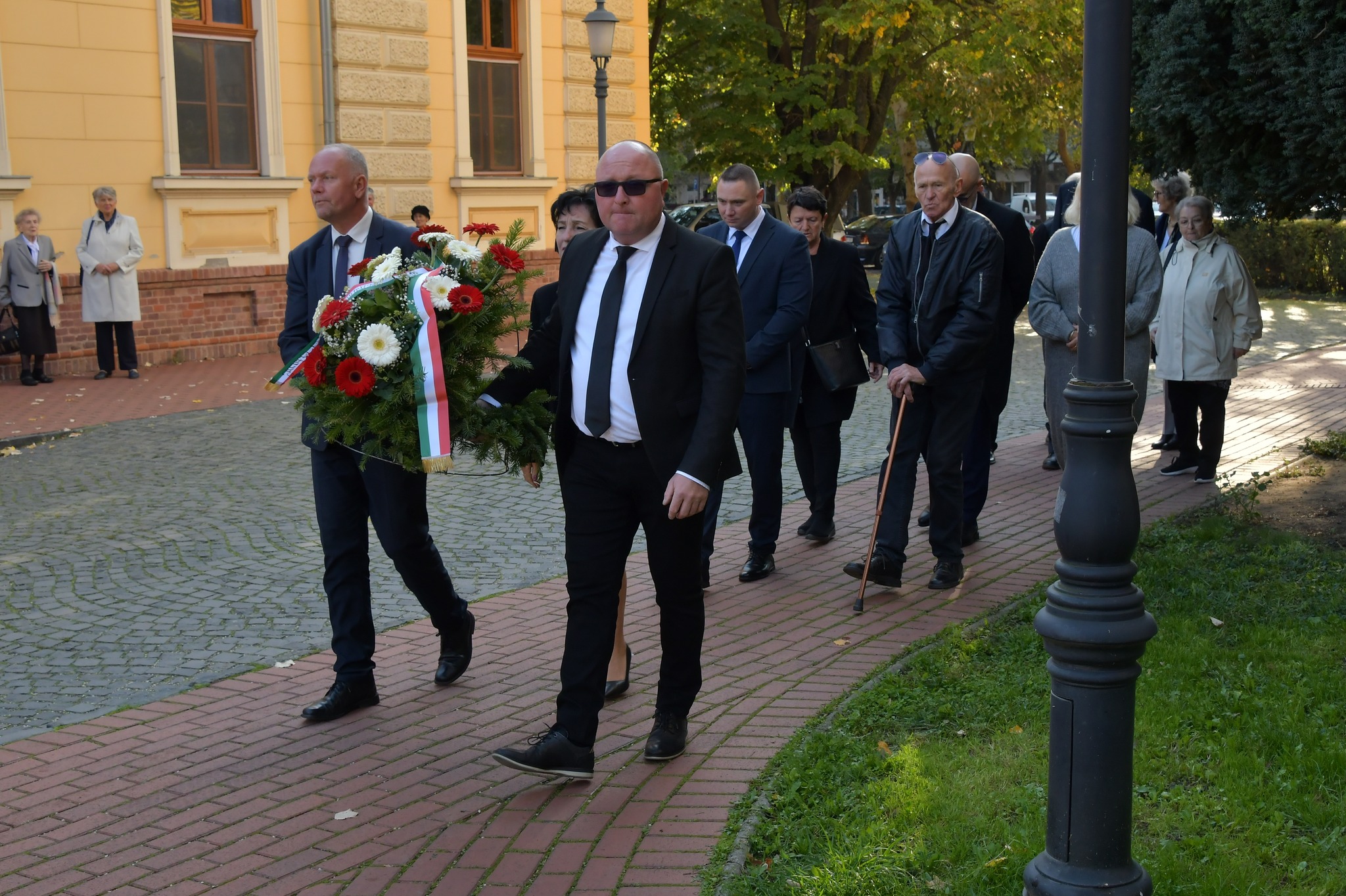 Szabó Zoltán Ferenc polgármester ünnepi beszédében Szentes városa nevében méltatta az 1956-os forradalom hőseit és a szabadságharcot. Rávilágított, hogy 1956 októberének eseményeit sokan csak a történelmi beszámolókból ismerhetjük, mégis ezek az emlékek mindannyiunk számára fontosak. Felidézte az ország és Szentes városának nehéz időszakait a világháborúk és a sztálinista diktatúra után, kiemelve, hogy az emberek jogok és szabadság nélkül éltek, míg 1956 októberében a magyar nép fellázadt a zsarnokság ellen.