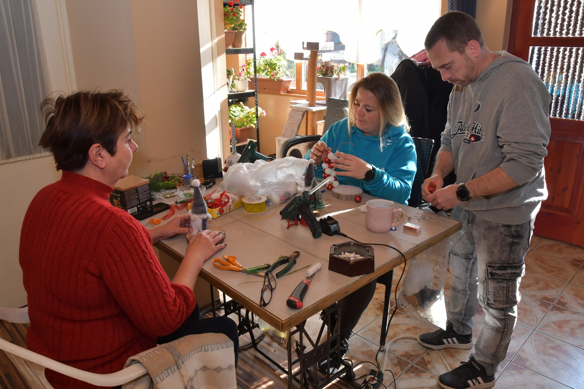 A Vándorló Szeretet Karitatív Egyesület egy baráti összefogásból kinőtt szervezet, amely öt éve indult el azzal a céllal, hogy rászoruló családokat támogasson. A képeken is látható, ahogy az önkéntesek hétvégenként készítik a karácsonyi dekorációkat, például asztaldíszeket és manókat, amelyek eladásából származó bevétellel hátrányos helyzetű gyermekeket segítenek.