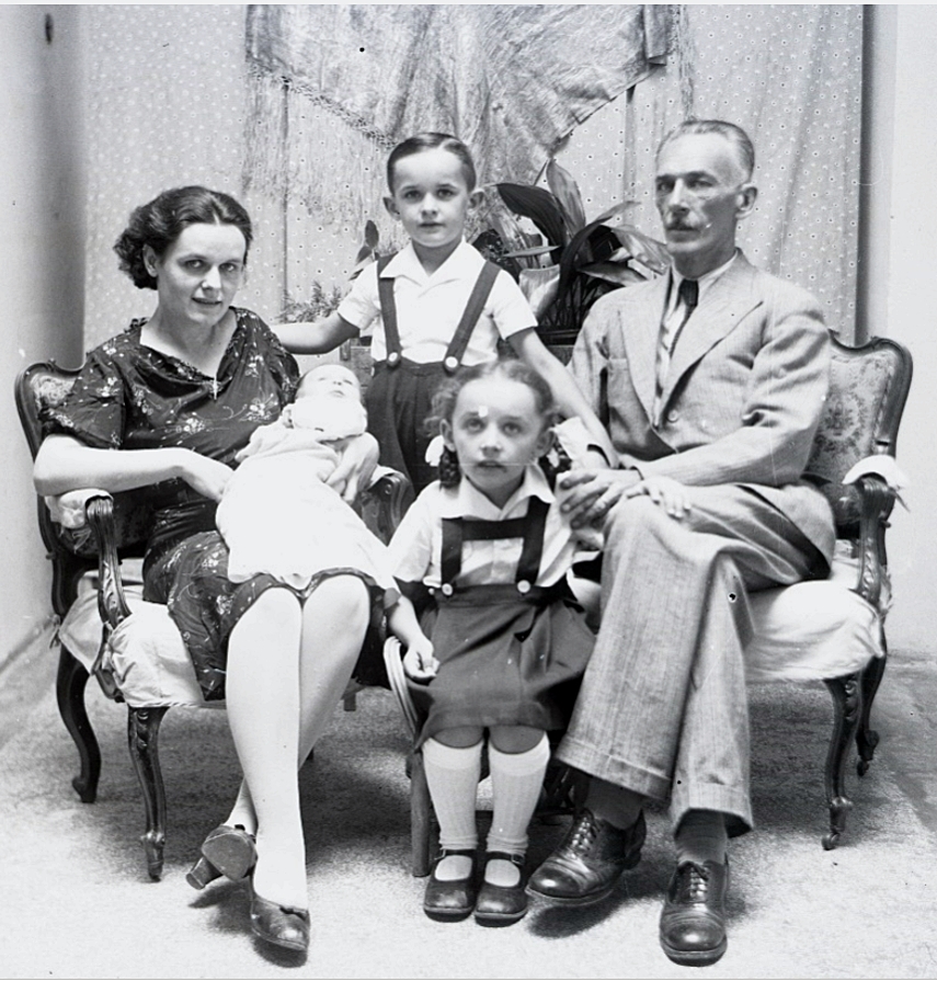 Fotó: A Zalotay-család Szentesen. Felesége: Baumgarten Erzsébet iparművész. Gyermekeik: Péter, Elemér és Erzsike.