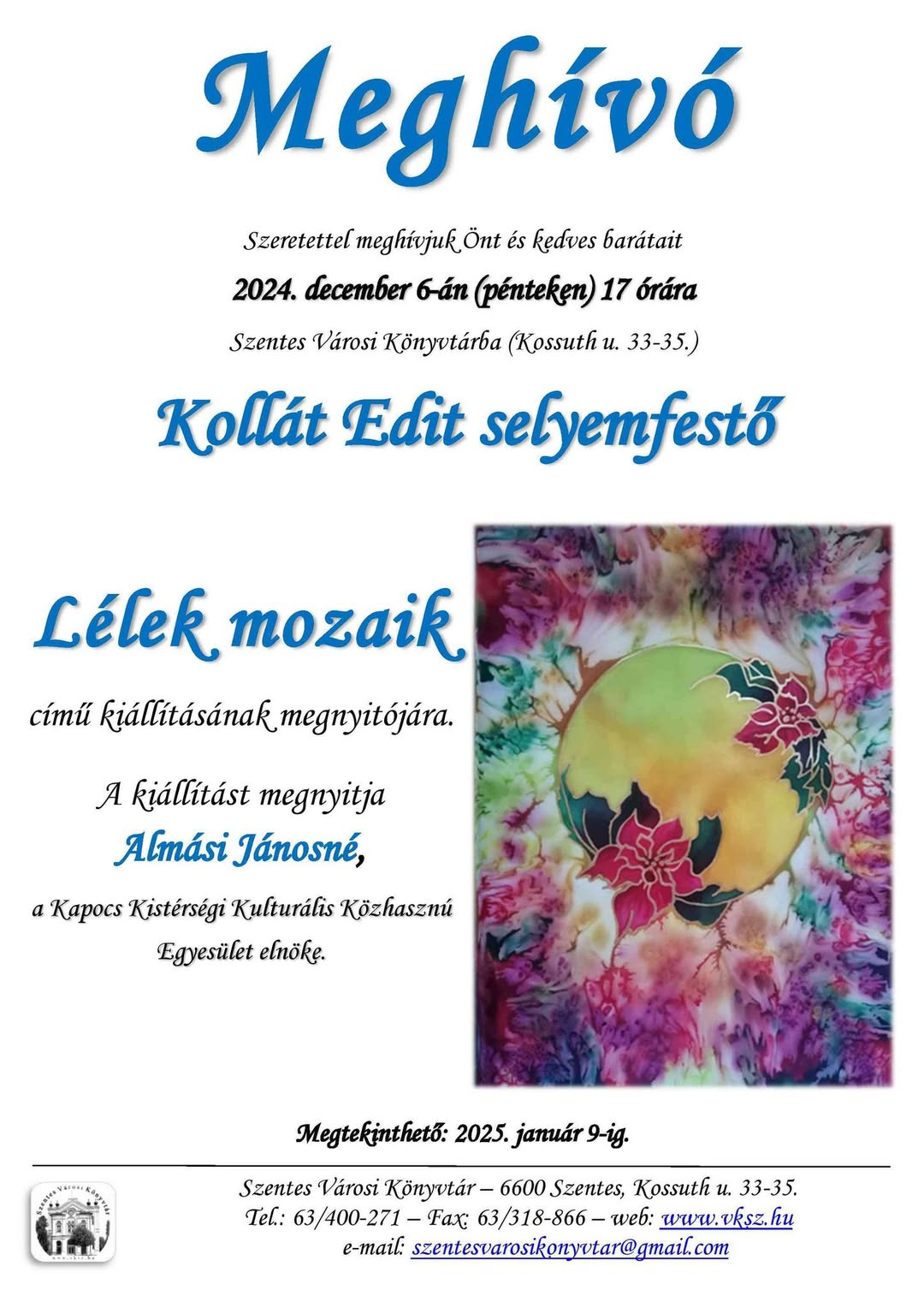 Holnap új kiállítás nyílik könyvtárunkban….