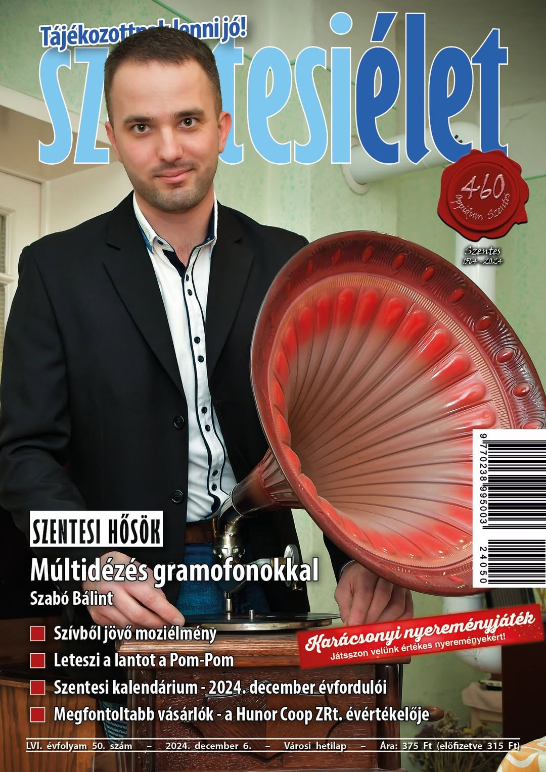 Az e heti Szentesi Élet címlapján Szabó Bálint gramofongyűjtő szerepel. Életének fontos része a gyűjtőszenvedély, szinte mindent gyűjt, ami régi. A sok kedves holmi között a legkedvesebb a gramofon, ebből 12-t őriz, időnként a nagyközönség is belehallgathat a régi lemezekbe. Címlapinterjúnkban Bálint elárulja, fiatal létére miért érdeklődik a régiségek iránt, és sok-sok érdekességbe is beavat a gramofonok világából.