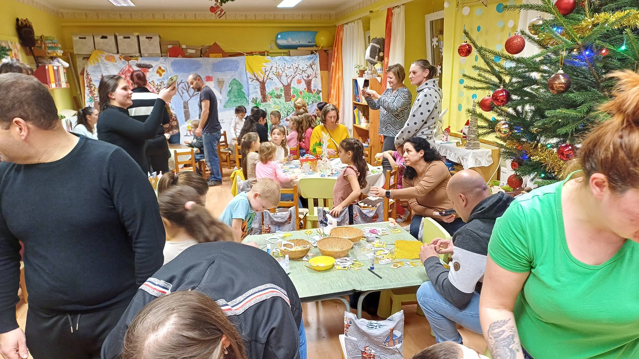 A meghitt perceket követően kezdetét vette a közös barkácsolás, ahol a gyerekek és szüleik együtt alkothattak szebbnél szebb karácsonyi díszeket és ajándéktárgyakat. Az óvoda pedagógusai változatos kézműves állomásokat állítottak fel. A közös alkotás során nemcsak a gyerekek fantáziája szárnyalt, de a szülők is szívesen bekapcsolódtak a kreatív munkába.