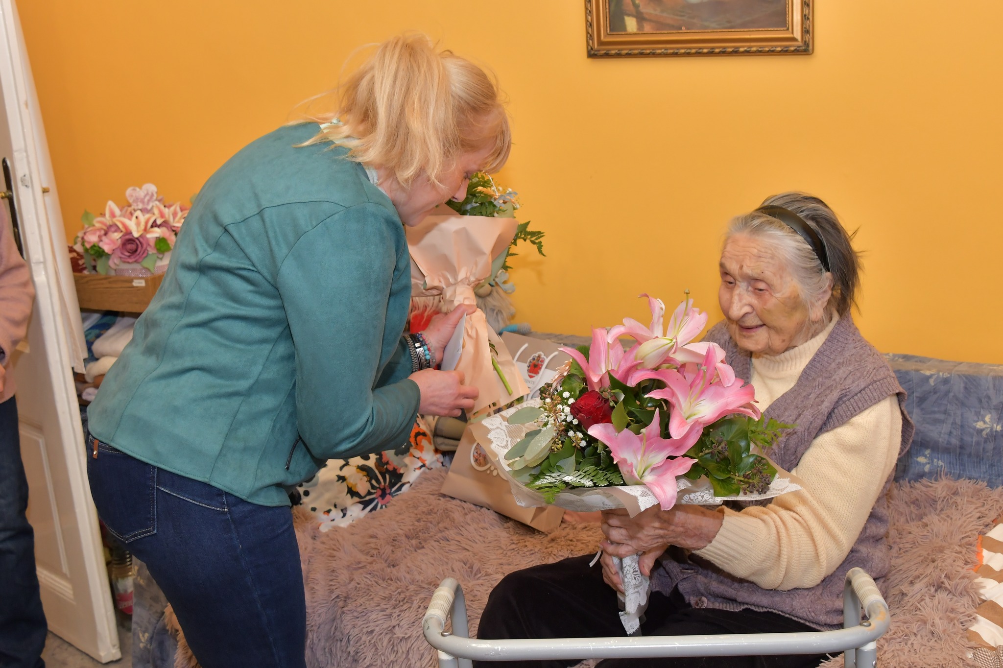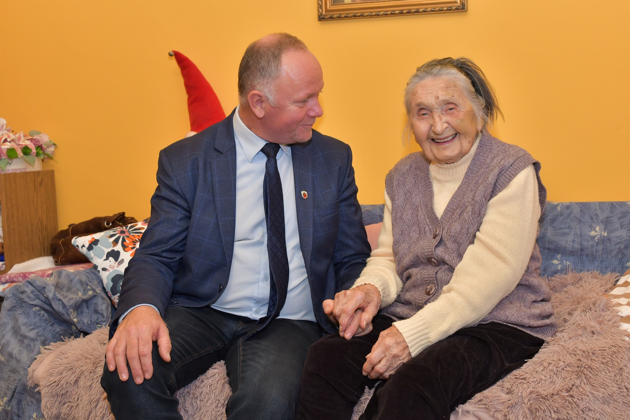 Szentes polgármestere, Szabó Zoltán Ferenc is meglátogatta őt, ahogy immár hagyományosan minden évben teszi századik születésnapja óta. „Ő volt az első százéves, akit köszönthettem polgármesterként” – mondta Szabó Zoltán Ferenc, miközben átadta az ajándékot és egy csokor virágot.