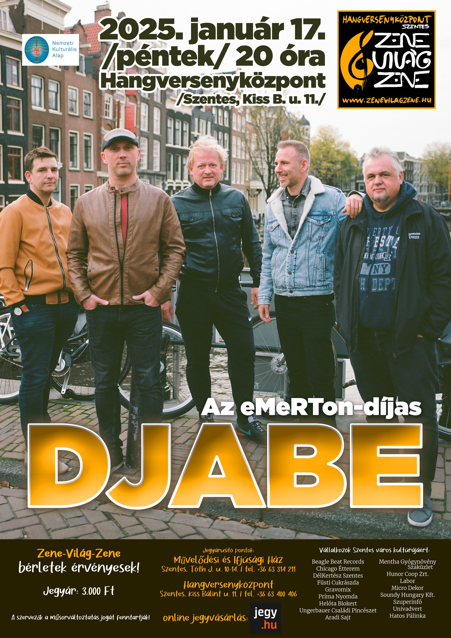 Az első számú hazai jazz/world fusion zenekarként számontartott Djabe 1995 nyarán kezdte el első albumának felvételét, azaz 2025-ben érkeznek fennállásuk harmincadik évfordulójához. A 3. X-et koncertsorozattal ünneplik meg idén, amelynek első állomása Majdnem 30 címmel január 17-én a Szentesi Hangversenyközpont.