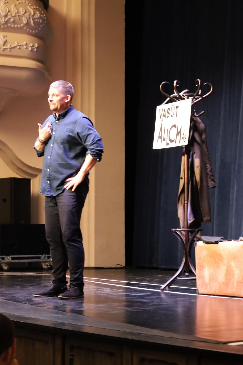 Humort és saját történeteket is csempész élvezetes, színészi eszköztárát is felvonultató előadásába Tóth Péter Lóránt, mellyel garantáltan a székhez szögezi hallgatóságát, legyenek bármilyen korúak és érdeklődésűek. Korábban gyalogszerrel érkezve mesélt Petőfi és Arany barátságáról, együtt jártuk be vele Radnóti utolsó útját, ezúttal a fiatal József Attilát hozta el körünkbe.