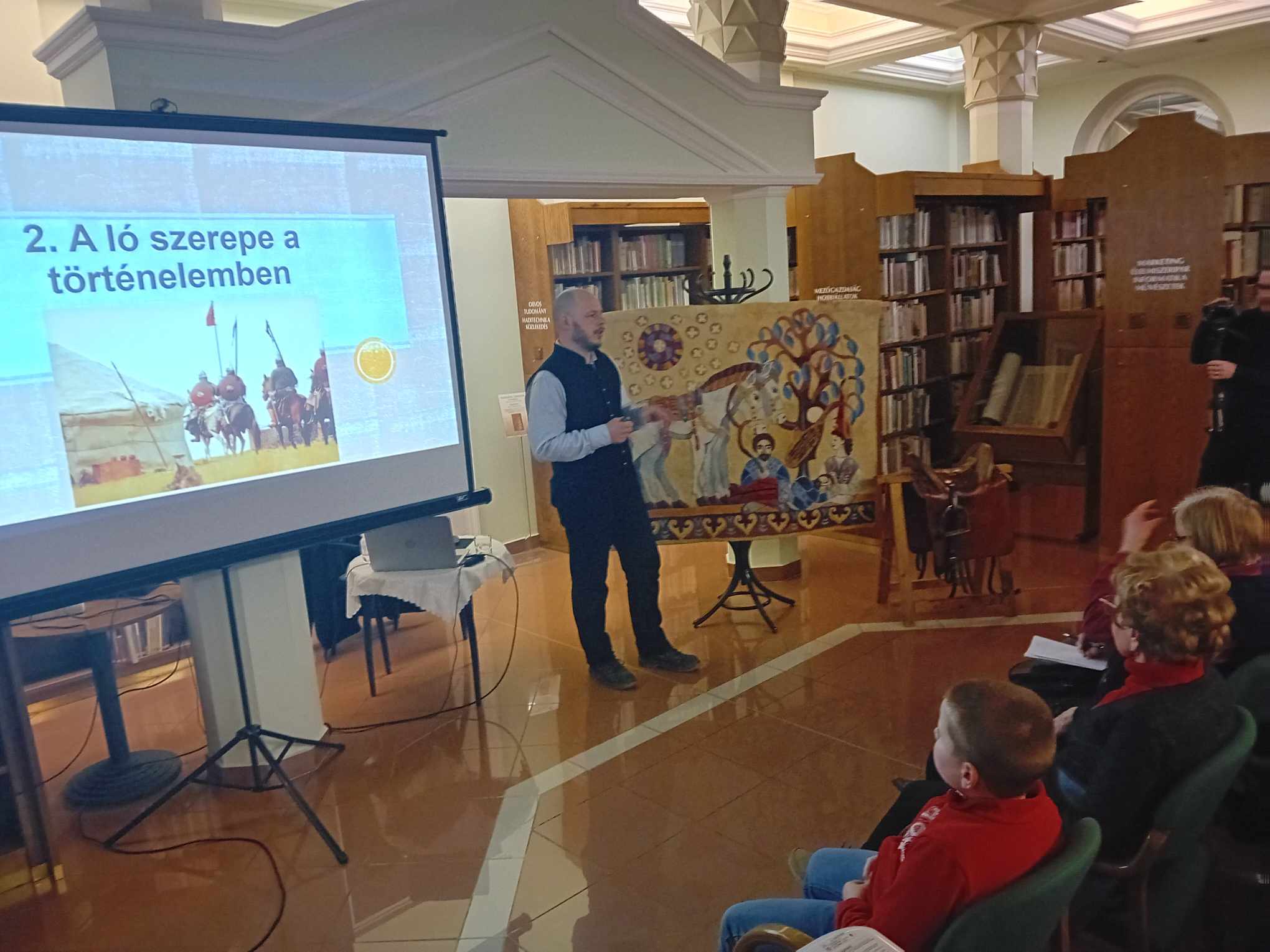 Folytatódott Vukovich Sándor lovakról szóló sorozata a városi könyvtárban. A lovas hagyományőrző, lótenyésztő középiskolai tanár ezúttal a lovaknak a történelemben játszott szerepéről tartott vetítéssel kísért előadást.
