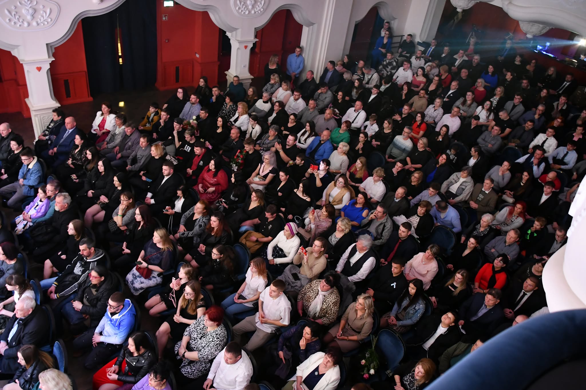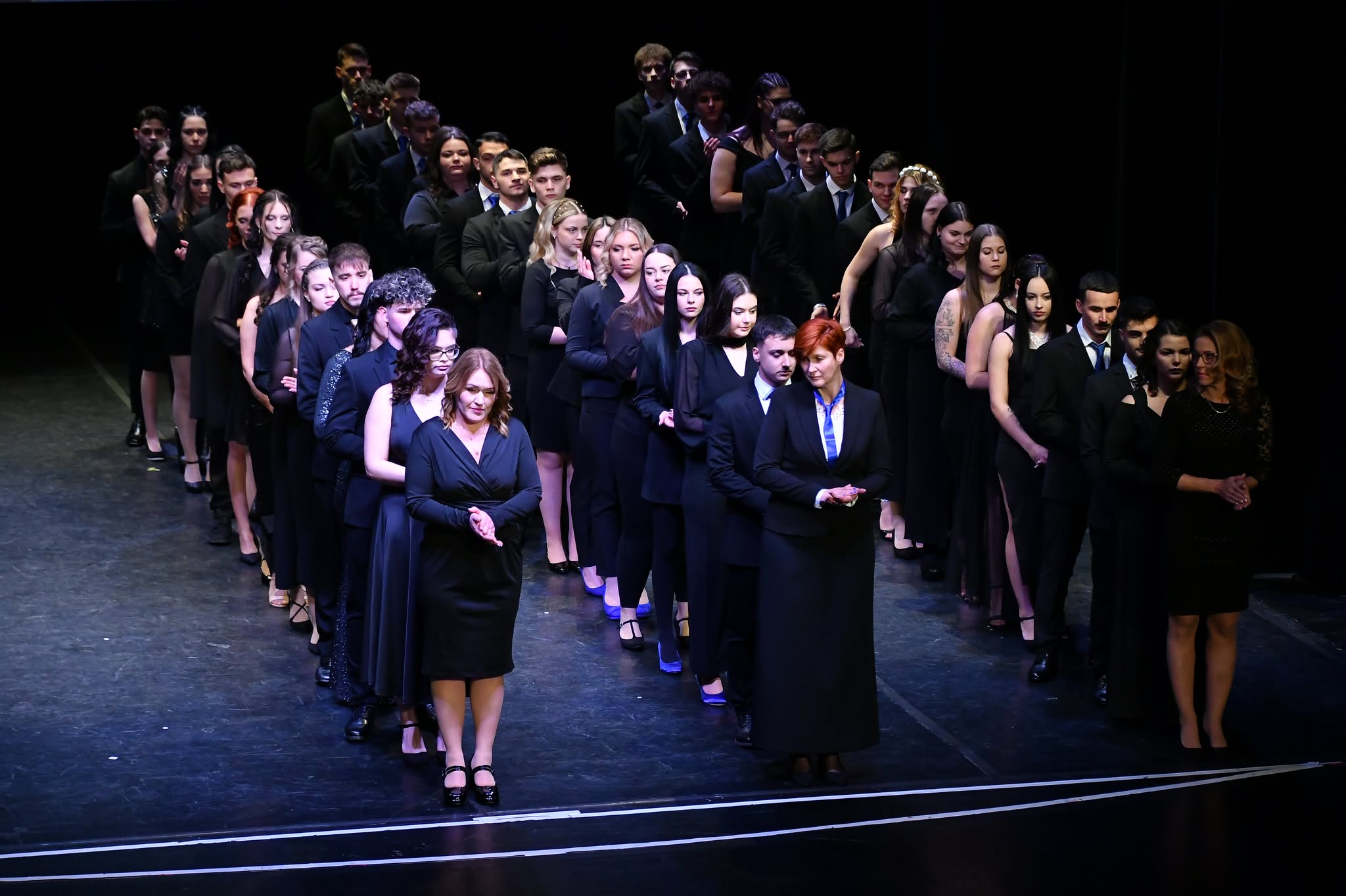 A Tóth József Színház és Vigadóban az első részben három szakképzős osztály, közel 60 fő, hat szakma képviseletében, a második részben a technikumi osztályok, azaz három osztály, négy szakmában mintegy ötven diák kapta meg az érettséget jelképező szalagot, osztályfőnökeiktől, egyenként. A háttérben gyermekkori fotók felvillantásával zajlott a szalagtűzés, még fokozva a nézőtéren helyet foglaló hozzátartozók elérzékenyülését. Az elmúlt években nem volt lehetőség méltó műsort szerkeszteni a végzősök számára, úgyhogy november óta a felkészülés, elsősorban a keringő lázában égtek. Természetesen osztályprodukciók is készültek, volt osztály, amelynek a tanulói maguk álmodták meg a koreográfiát, a keringőhöz viszont tánctanárt kértek fel, hogy pontosak, rendezettek legyenek a lépések, hiszen mindenkor a keringő a szalagavató bálok fénypontja.