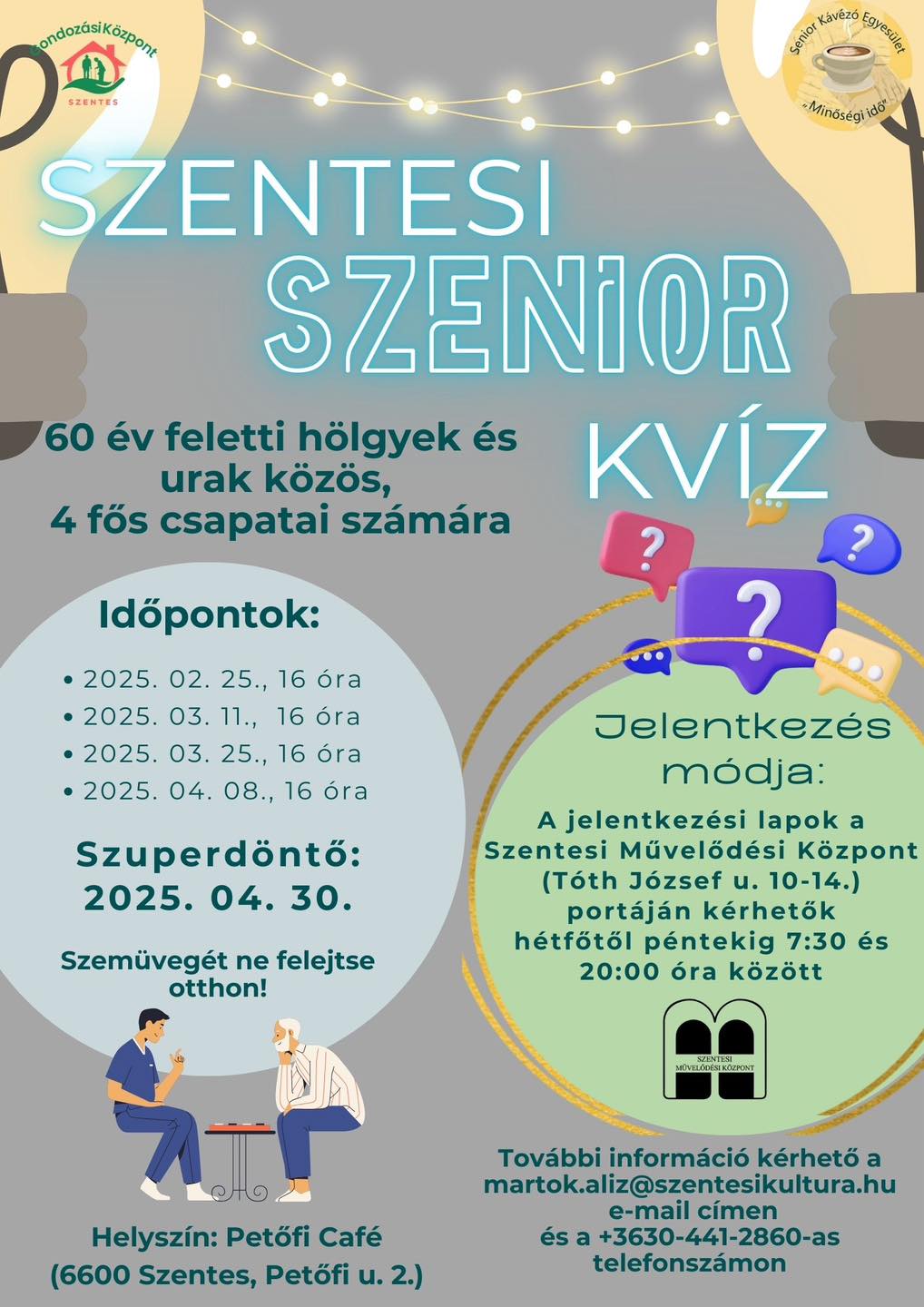 A két éve megjelent Szentesi városkerülő társasjáték adta az alapötletét a február végén induló, többfordulós szenior kvízversenynek. A 60+-os korosztályt szeretnék megszólítani, szellemi játékra hívni az új műveltségi vetélkedővel, fókuszban Szentessel.