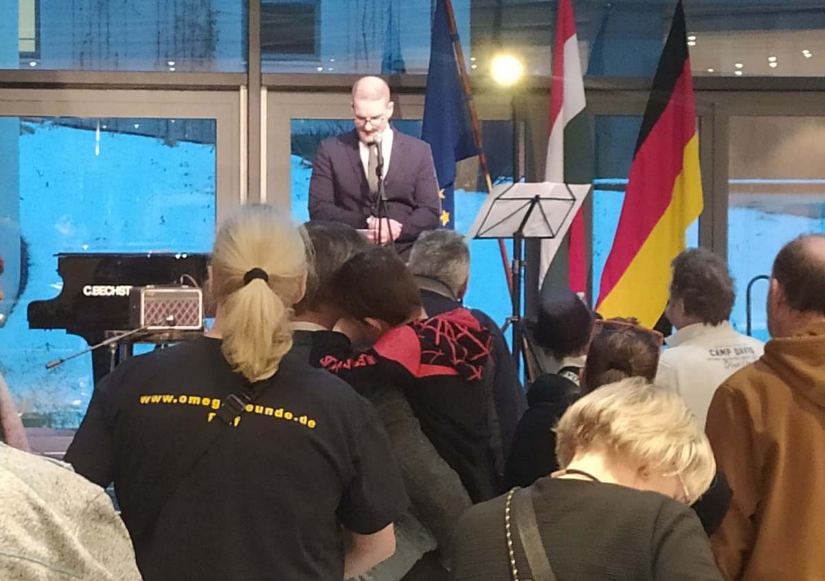 A megnyitón közel százan vettek részt, ami nem csak a szervezőket, de a követség munkatársait is meglepte. Omega dalok is felcsendültek Farkas Péter, az Új Babylon Omega tribute zenekar énekesétől, majd a német Omega rajongók olyan igazi kuriózumokat csodálhattak meg, mint a legendás Red Star nagylemezt, ami az Omega első, 1968-ban, 5000 példányban megjelent londoni albuma, az énekes Kóbor János híres, vörös csillaggal díszített fellépő ruhája az Időrabló lemez idejéből, továbbá számos, ritkaságnak számító külföldi plakátot.