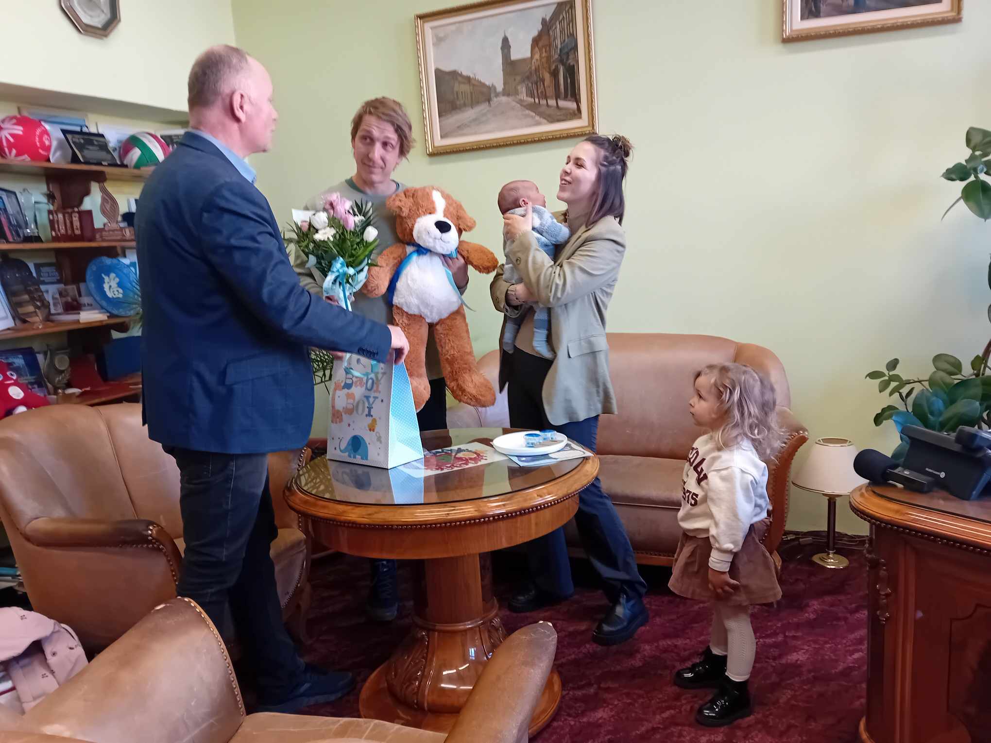 Budai Vilmos 2025 első szentesi babája, aki Budapesten látta meg a napvilágot. A kisfiút szüleivel és 3 éves nővérével együtt a polgármesteri hivatalban köszöntötték.