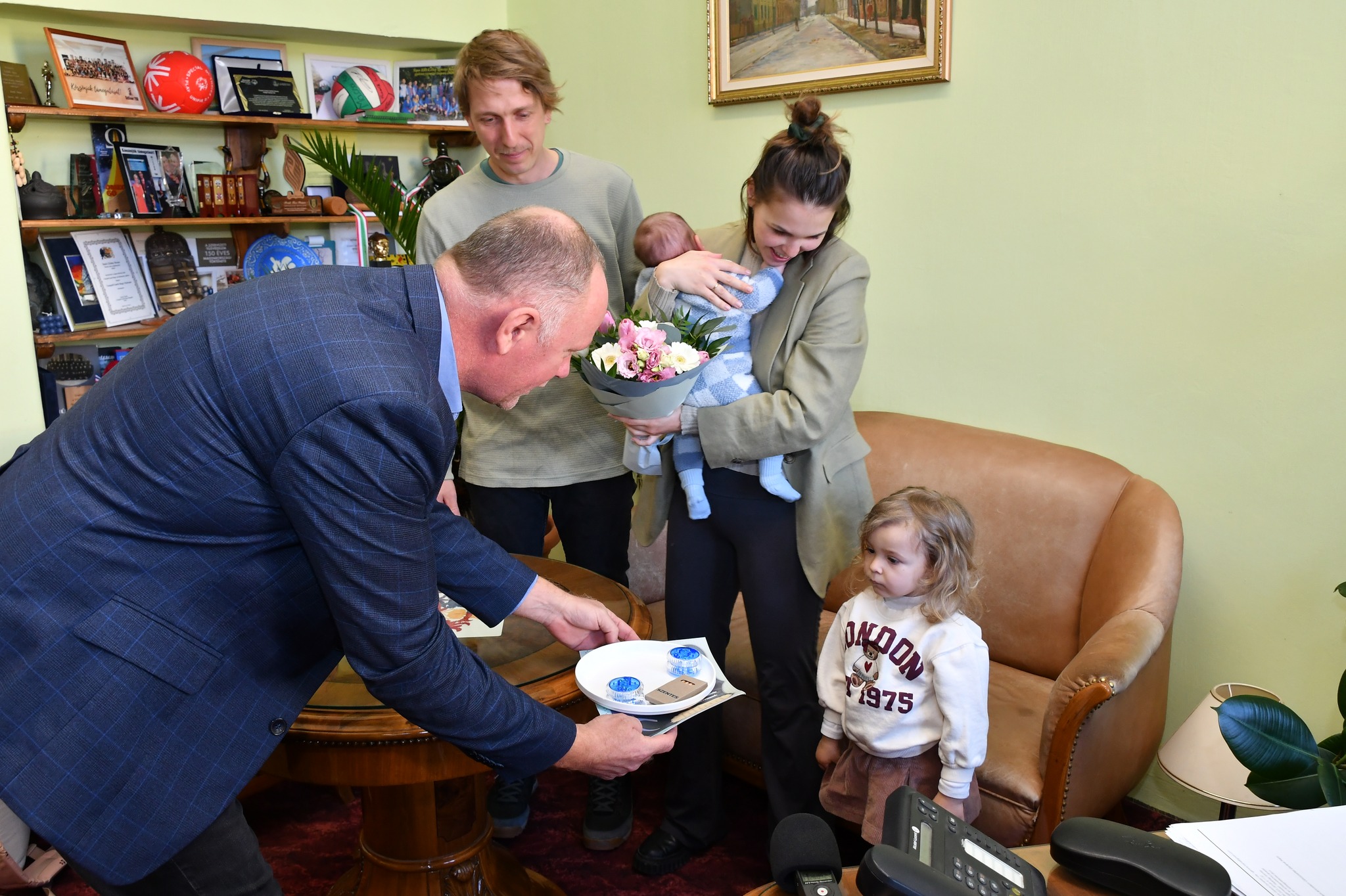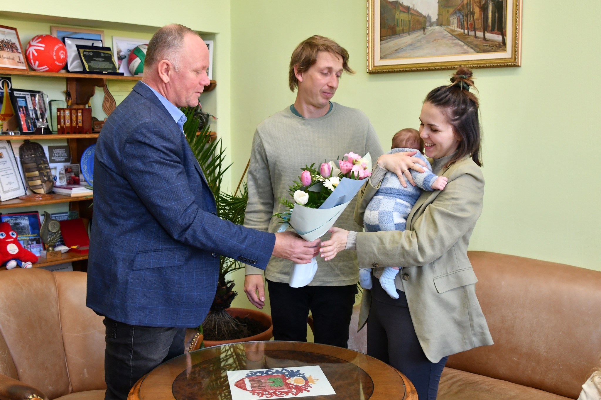 Ma, február 17-én Szabó Zoltán Ferenc polgármester a Városházán fogadta Vilmost, szüleit – Budai Zsoltot és Budai Abigélt –, valamint hároméves nővérét, Micit. A találkozón meleg szavakkal gratulált a családnak, akik boldogan meséltek a kisfiú érkezéséről.