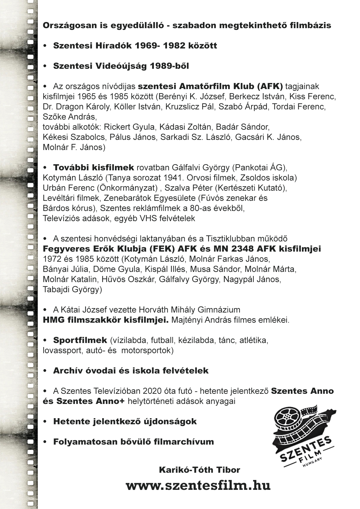 Március 15-én útjára indult a teljesen megújult SzentesFilm honlap, a város mozgóképes dokumentálása az 1940-es évektől a kétezres évekig, több száz órányi retro filmélménnyel.