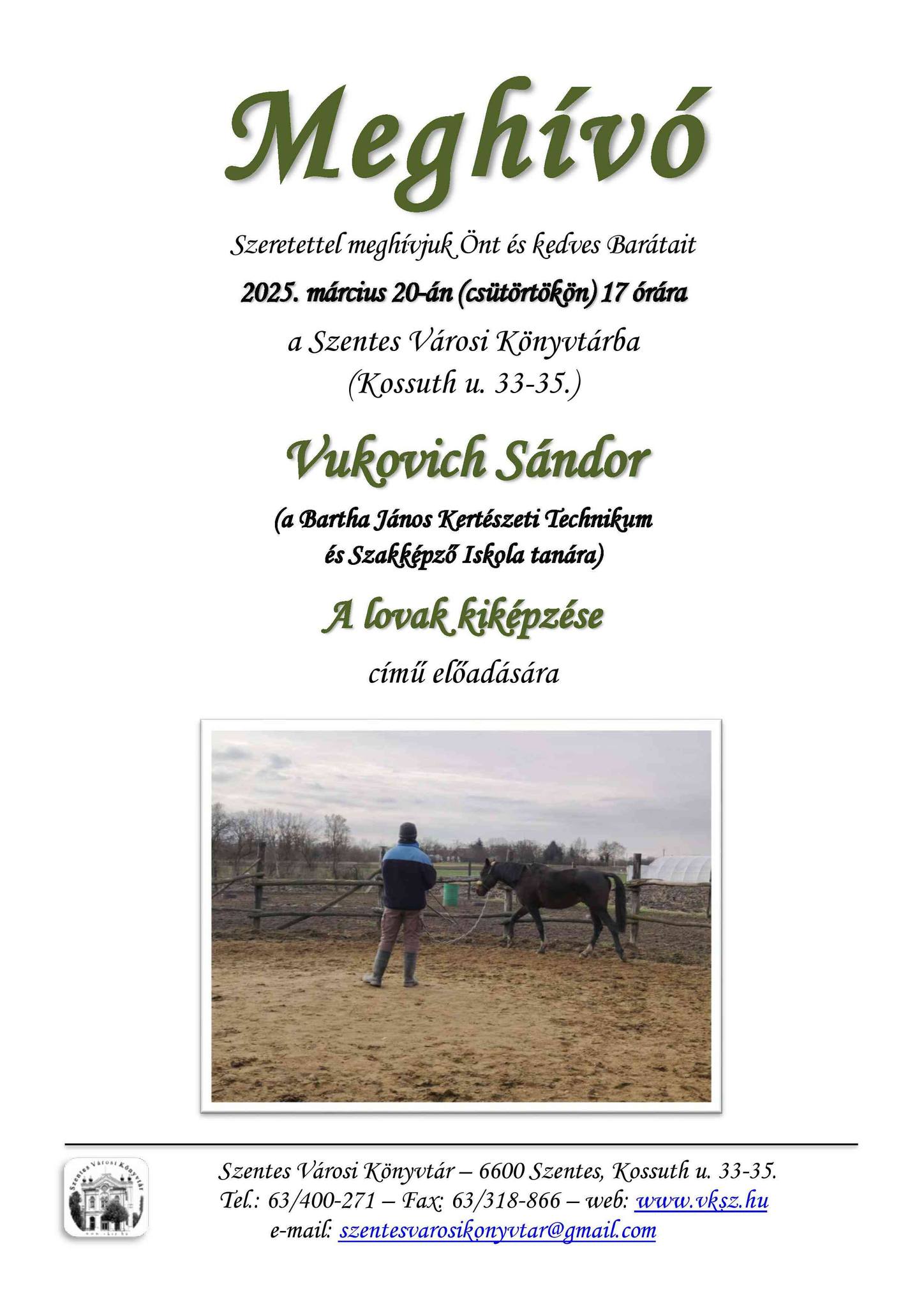 🔹17 óra A lovak kiképzése. Előadó: Vukovich Sándor INGYENES