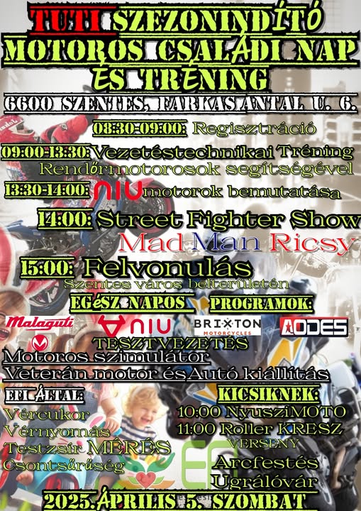 A TUTI Motoros-, és Autósiskola Kft. szervezésében megrendezésre kerülő „VII. TUTI Szezonindító Családi Motoros Nap” miatt 2025. április 05-én (szombaton) 07:00 órától 17:00 óráig útlezárás és forgalomkorlátozás lesz városunkban a Farkas Antal utcának a Pacsirta utca és Nagyörvény utca közötti szakaszán (szabad bejárással a Pacsirta és a Nagyörvény utca felé), továbbá ezen időtartamon belül 13:30 órától 15:00 óráig kibővítésre kerül a lezárás a Farkas Antal utcának a Nagyörvény utca és a Sáfrán Mihály utca közötti területére is (beleértve a Farkas Antal utca – Nagyörvény utca kereszteződésében lévő háromszög alakú útszakaszt is, ezért a Nagyörvény utca felé a szabad bejárás ezidő alatt megszűnik).