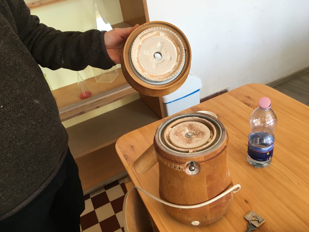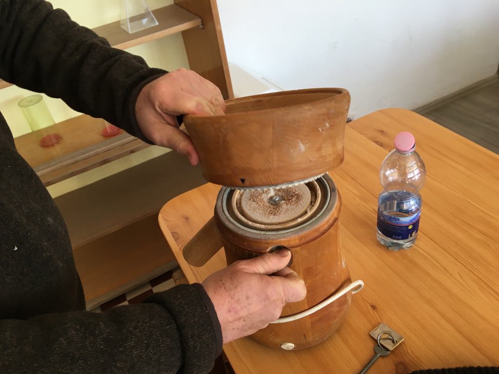 Hozott egy kis malmot, amelyen bemutatta a gabonaőrlés folyamatát.
