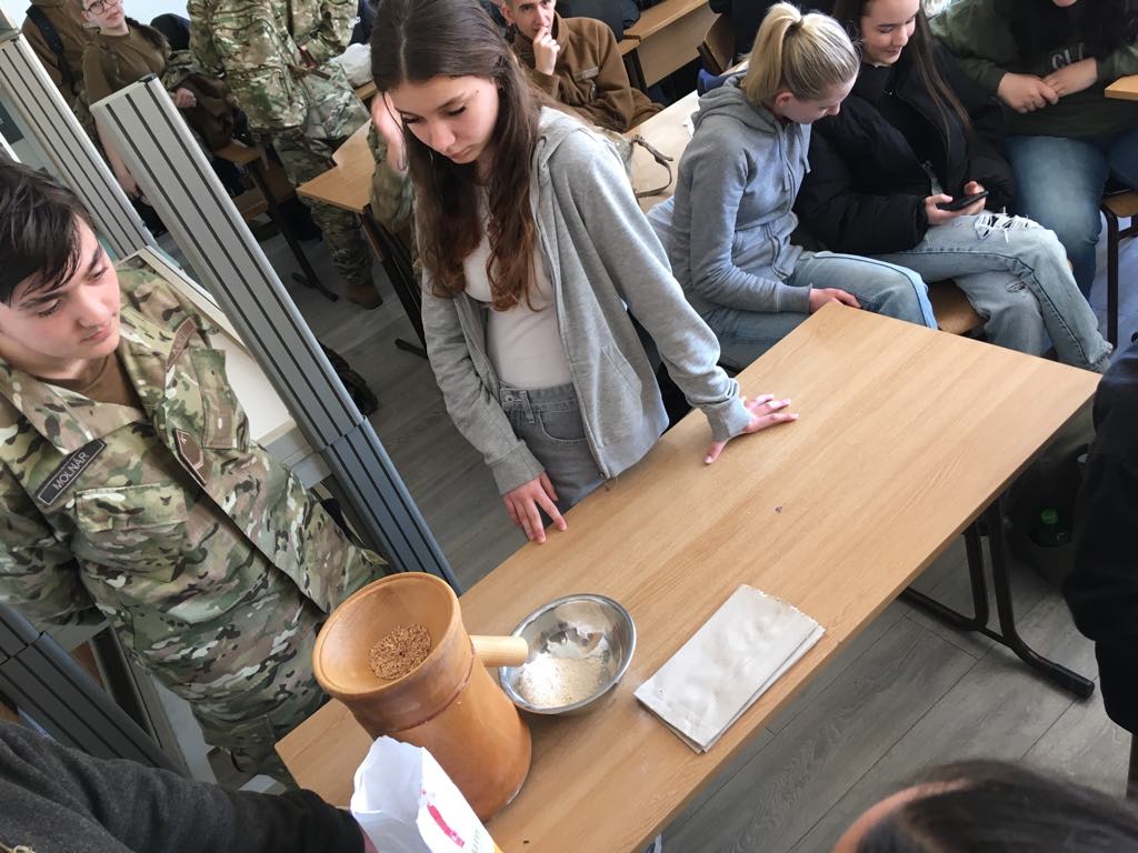 A részt vevő 9.b, 9.c osztályos tanulók megnézhették, hogyan készül liszt a búzából, megtudhatták miért egészségesebb az ősi magyar gabonafajtákból készült pékárut fogyasztanunk.