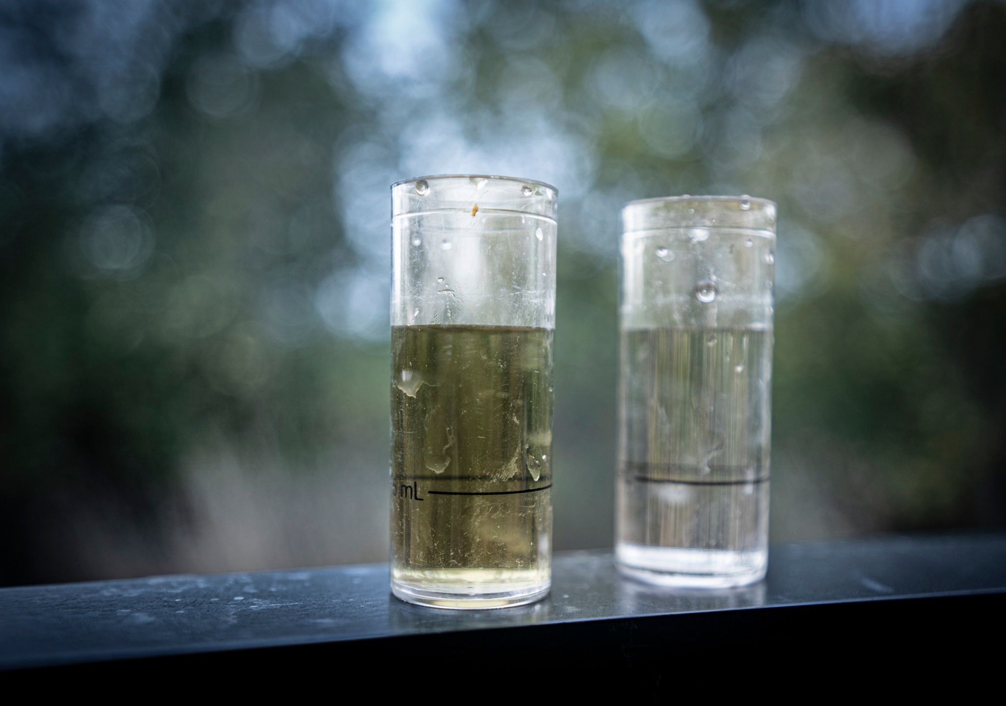 ◀️balra a Kurca barnás vize, ▶️jobbra pedig az általunk tisztított, kristálytiszta víz.