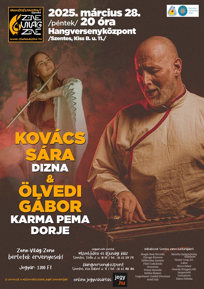 🔖 jegyek: https://www.jegy.hu/program/kovacs-sara-dizna-olvedi-gabor-karma-pema-dorje-171811/1241018?affiliate_code=fb.jegy.hu&lang=hu online, valamint a Hangversenyközpontban és a Művelődési Központban kaphatók.