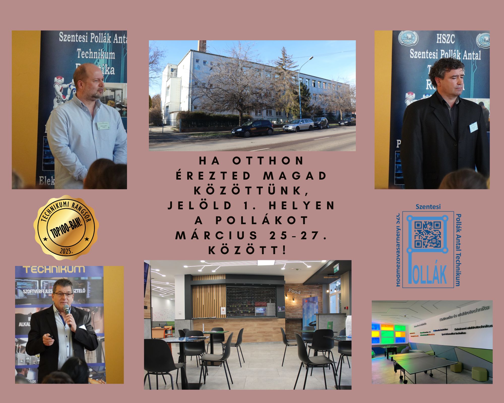 Az ideiglenes felvételi jegyzék tanulmányozása után minden érintettet emlékeztetni szeretnénk, hogy március 25. és 27. között még van lehetősége a megjelölt intézmények sorrendjének módosítására! Legnagyobb esély akkor van a bekerülésre, ha 1. helyen jelölik iskolánkat, hiszen így a Pollákot csak 2. vagy 3. helyen választó diákok még kikerülhetnek előttük a sorszámozott listáról. Az Oktatási Hivatal állásfoglalásában szerepel, hogy akár új tanulmányi terület (szak) megjelölése is lehetséges abban az iskolában, ahová a tanuló eredetileg is jelentkezett. Hív és vár minden leendő 9. évfolyamost a P❤️LLÁK! További kérdések esetén szívesen állunk rendelkezésre munkaidőben a 63/562-280-as telefonszámon, illetve a pollak@pollakszentes.hu e-mail címen.