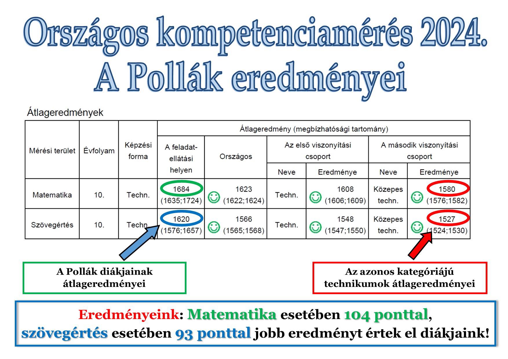 Miért érdemes a Pollákot választani? 10. évfolyamosaink a tavalyi esztendőben is kiemelkedően teljesítettek a külső méréseken: mindkét területen (matematika és szövegértés) mintegy 1️⃣0️⃣0️⃣ ponttal előzték meg a hasonló típusú technikumokban tanuló diáktársaikat. Büszkék vagyunk rájuk, illetve az őket oktató-nevelő pedagógusainkra is! 🙏👏👌