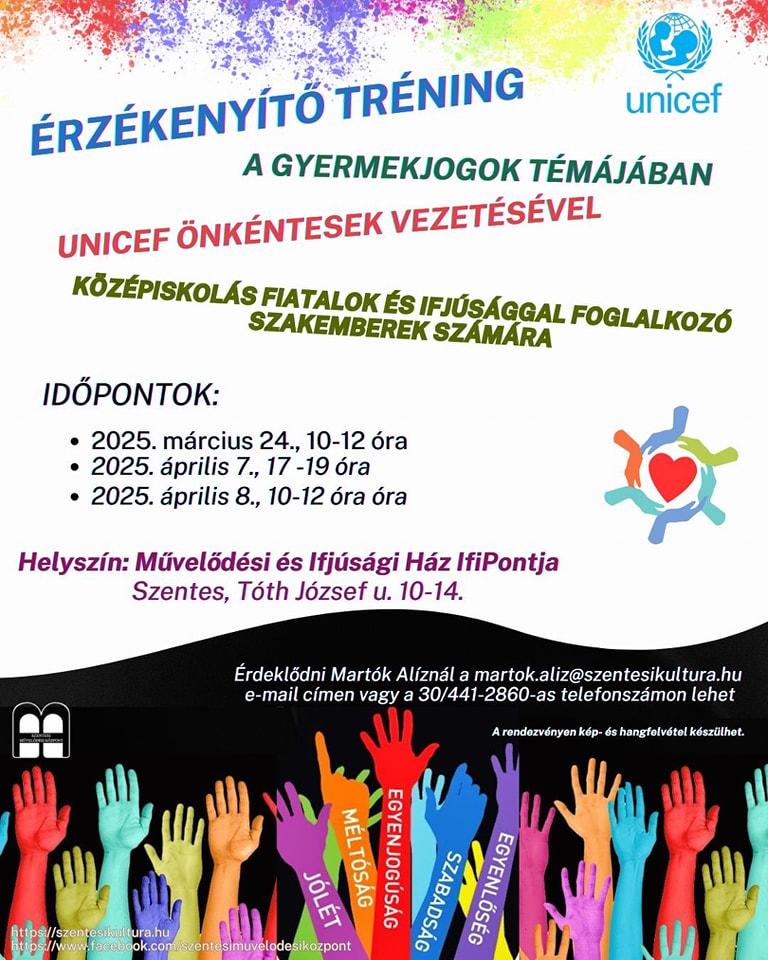 ❗️UNICEF önkénteseknek köszönhetően érzékenyítő tréning indult a Szentesi Művelődési Központ IfiPontjában. A gyermekjogi fókuszú interaktív foglalkozások elsősorban középiskolás diákoknak és ifjúsággal foglalkozó szakembereknek szólnak. Az első alkalomból mutatunk is néhány pillanatképet, talán kedvet kapnak/kaptok a következő alkalmon való részvételhez!