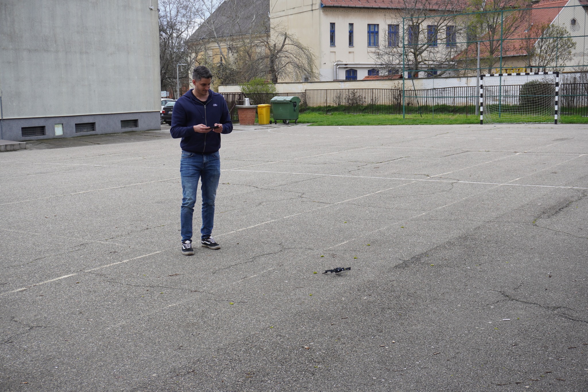 A 9.C osztály tanulói közelről szemlélhették meg az iskolai drón működését és irányítását.