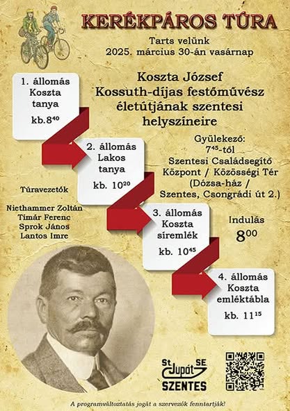 🔹8 óra Kerékpáros túra: Koszta József Kossuth-díjas festőművész életútjának szentesi helyszíneire