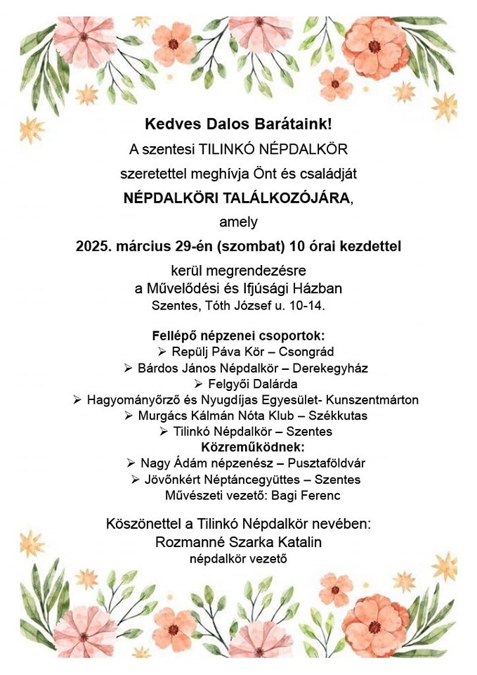 🔹10 óra Népdalköri találkozó a Tilinkó Népdalkör szervezésében