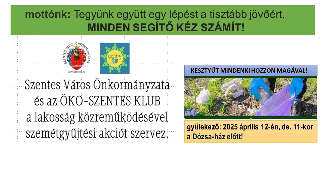 Az Öko- Szentes csoportja is kapcsolódik a ” Szépítsük meg Szentest ” városi szemétszedési akcióhoz! Kapcsolódjanak be minél többen!