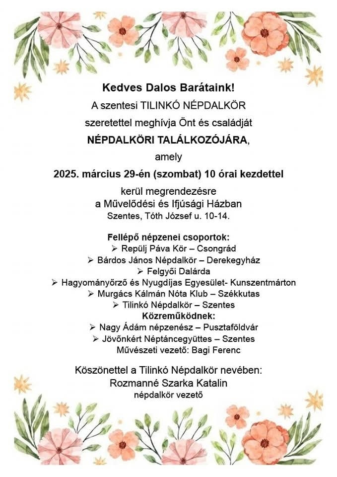 🎼🎵🎶A 18 éve működő szentesi Tilinkó Népdalkör nagyszabású népdalköri találkozót szervez.🎶🎵🎼
