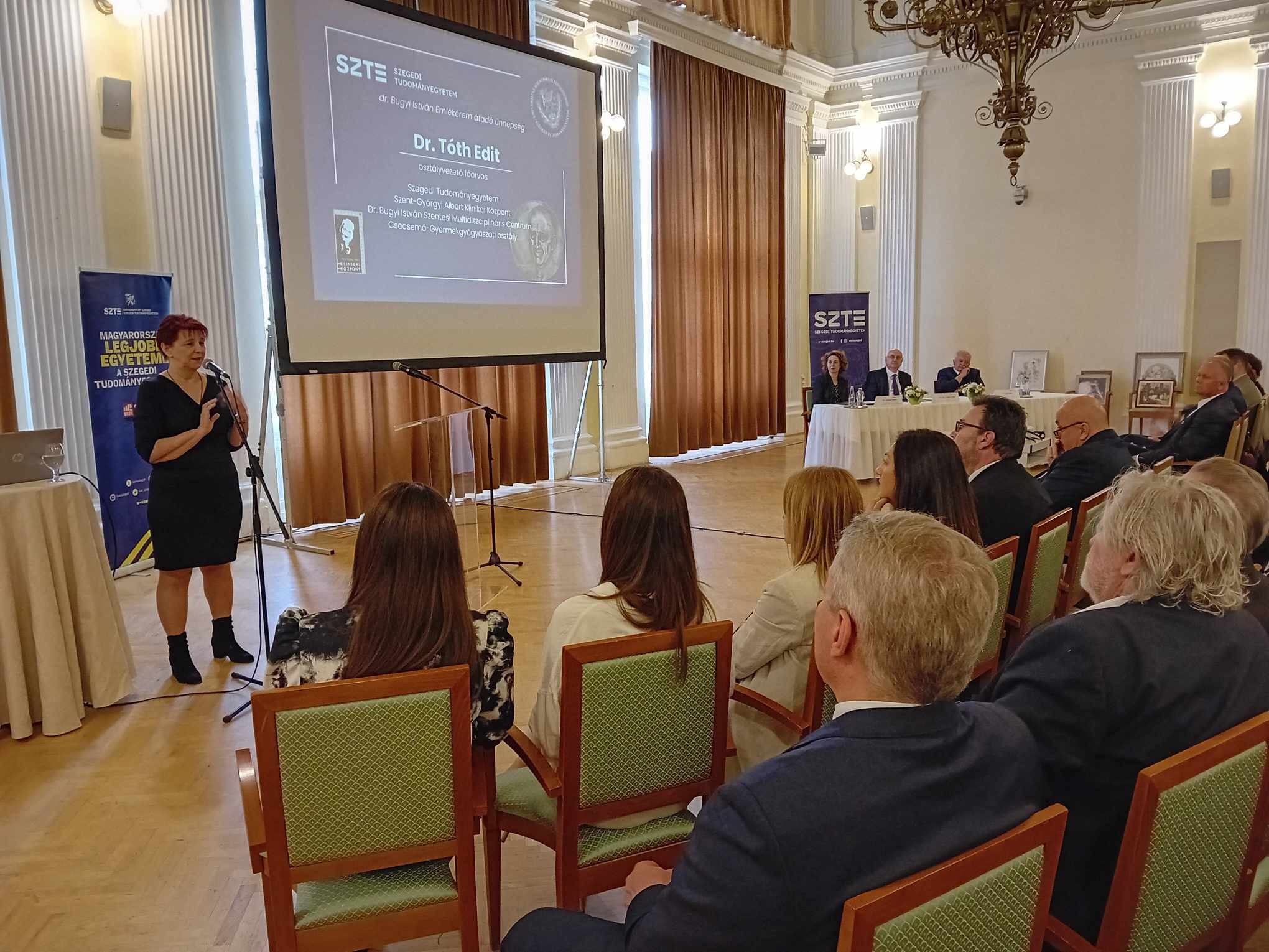 A szentesi Dr. Bugyi István Kórház által 1988-ban alapított rangos orvosi elismerést idén 36. éve adják át. 2025-ben Dr. Tóth Edit, az SZTE SZAKK SZMC Gyermekgyógyászati Klinika osztályvezető főorvosa vehette át a megtisztelő elismerést.