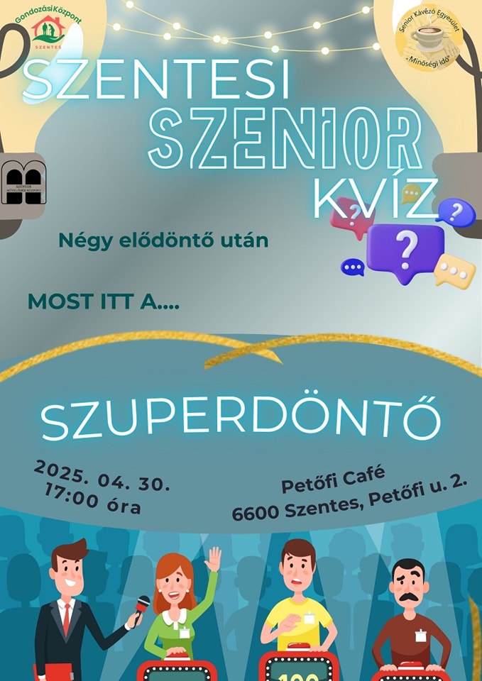 ❗️A Szentesi Szenior Kvíz Szuperdöntője a Városnapok programsorozatban, 2025. április 30-án, 17 órakor a Petőfi Caféban.❗️