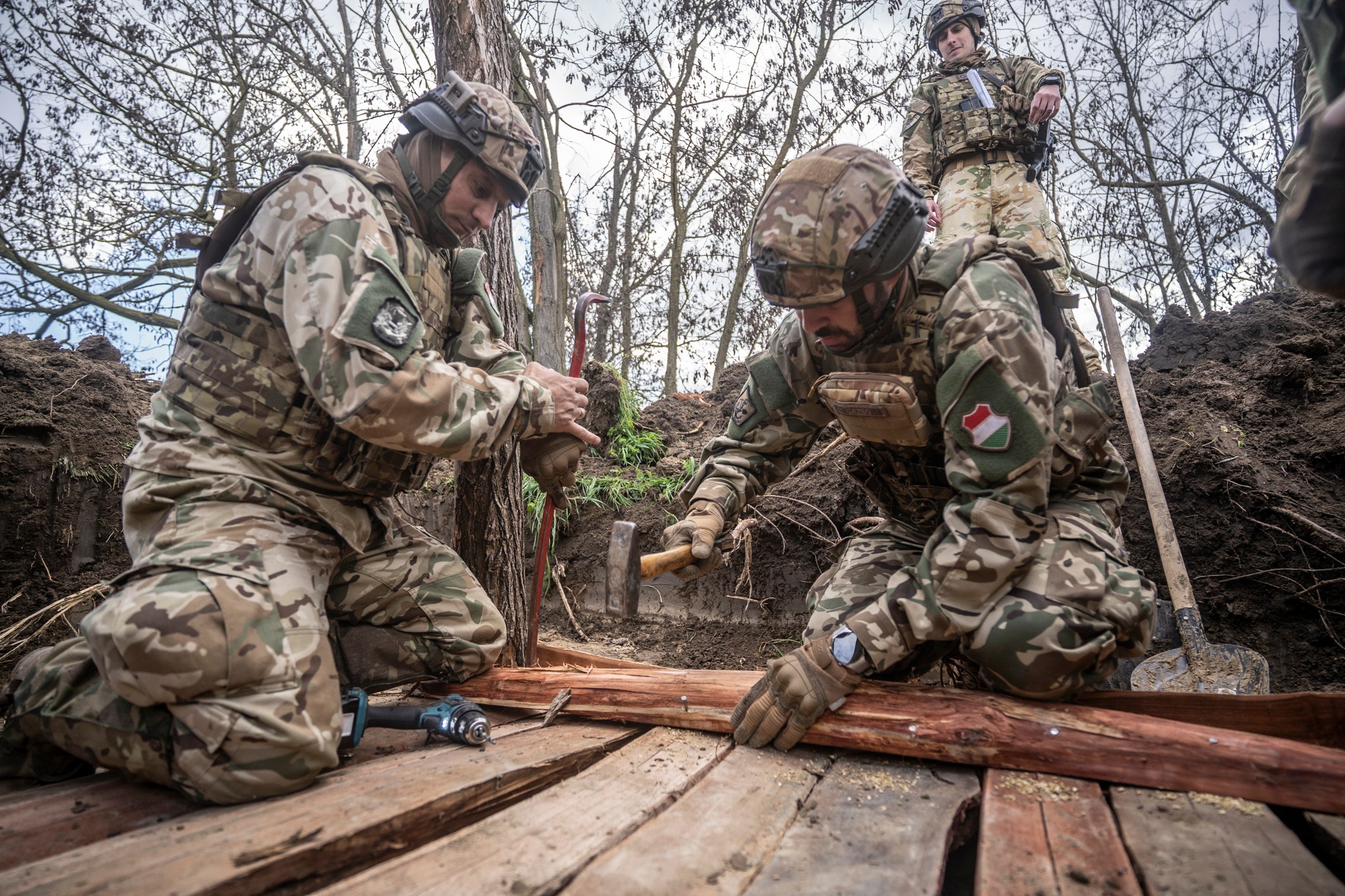 Az altiszt jelöltek műszaki szakkiképzésük keretében az erődítési és álcázási ismereteiket bővítik.