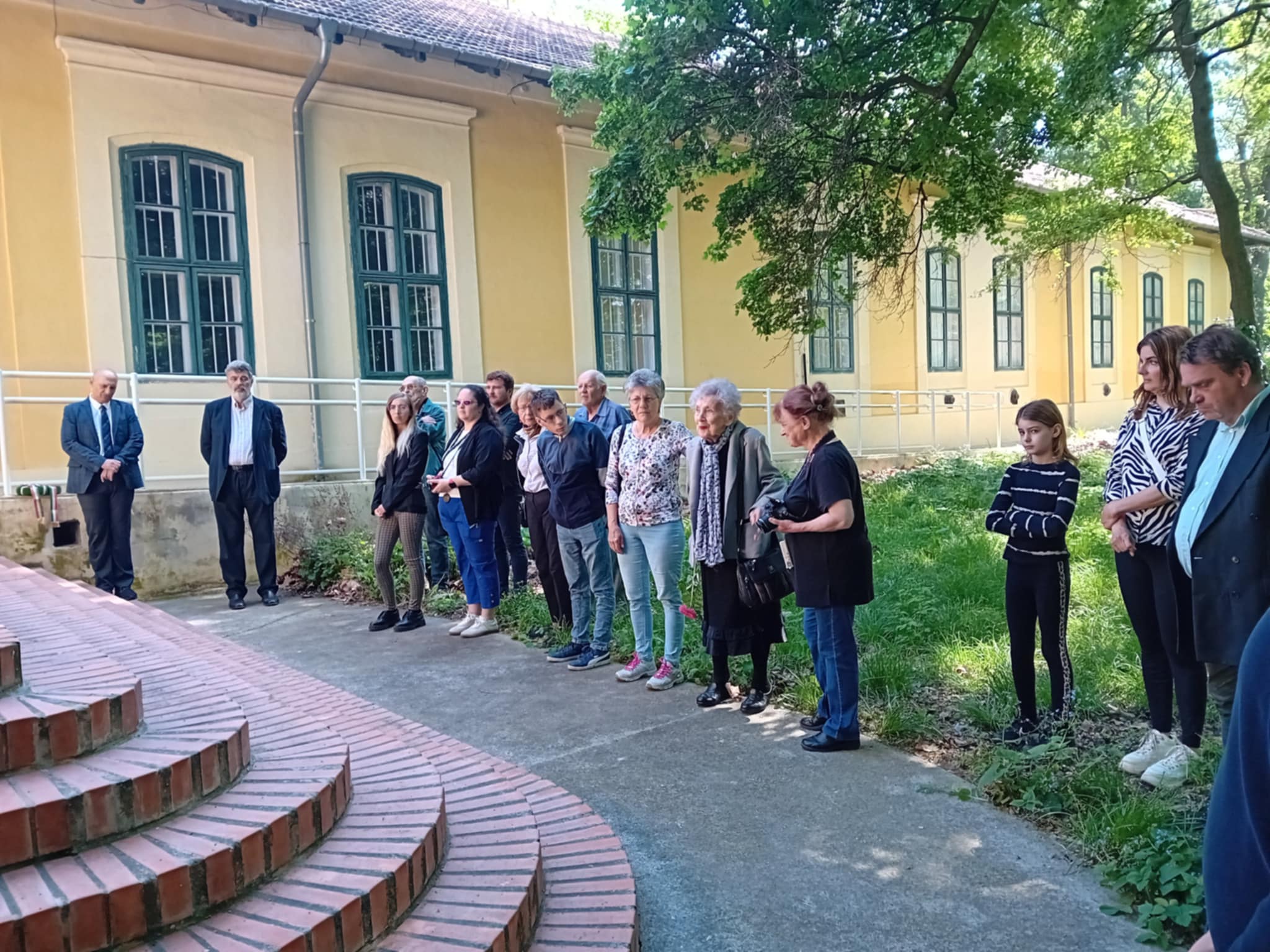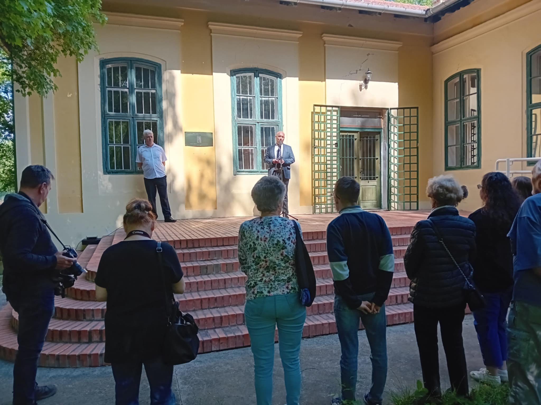 Az emlékház bejáratánál elhelyezett emléktáblánál koszorúztak.